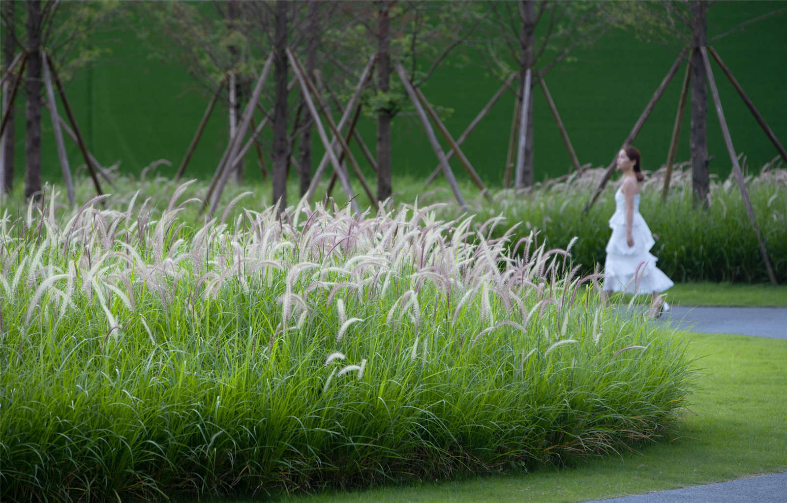 穿梭于水杉林中,漫步于狼尾草邊,如同漫步云端,輕松愜意,還原人們記憶中林間小道場(chǎng)景。