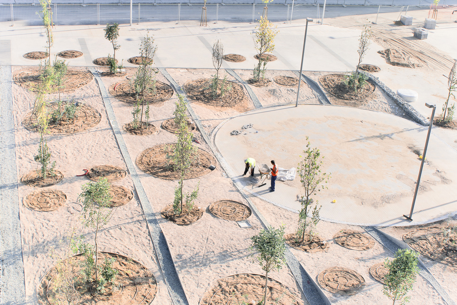 The concentric patterns and linear design in the park ? Cjcpaisaje
