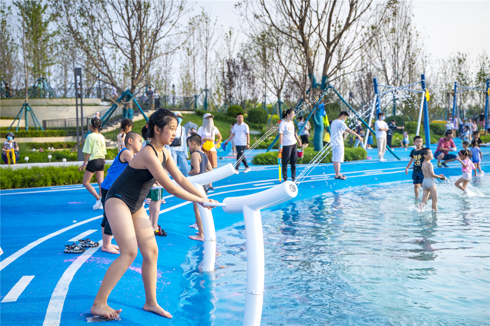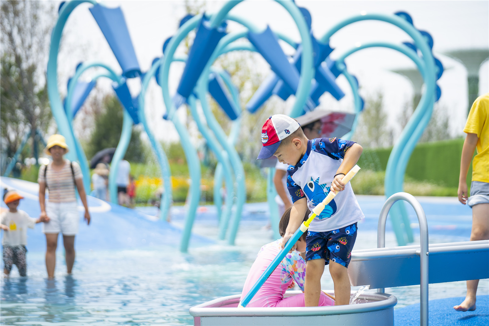 感官體驗,歡樂加倍,夢幻沙灘闖關(guān)凱旋,來水攤邊休憩下吧!壓動水柄控制水槍,“消滅”你看到的每個敵人!