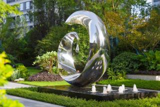 當(dāng)來(lái)者緩緩步入園內(nèi),由于強(qiáng)烈的空間開(kāi)合關(guān)系而出現(xiàn)“柳暗花明”的豁然之感,強(qiáng)化了園林的藝術(shù)感染力。靈動(dòng)的泉水噴涌,與趣味雕塑的結(jié)合打破空間單調(diào)生硬的視覺(jué)效果,隨著潺潺流水聲,朵朵水花濺起,為靜謐的園區(qū)增添了無(wú)窮的魅力。