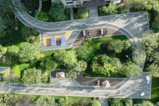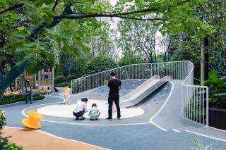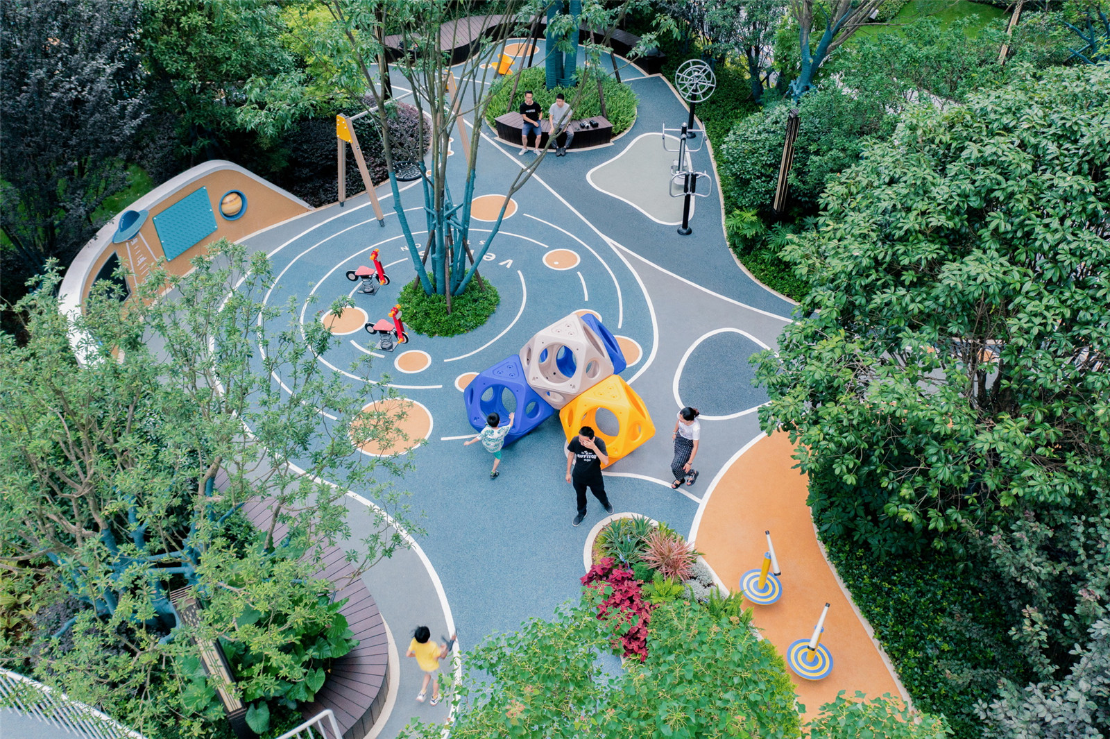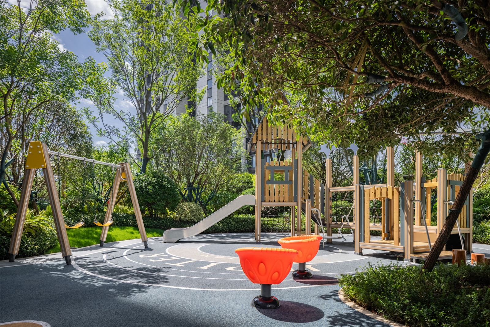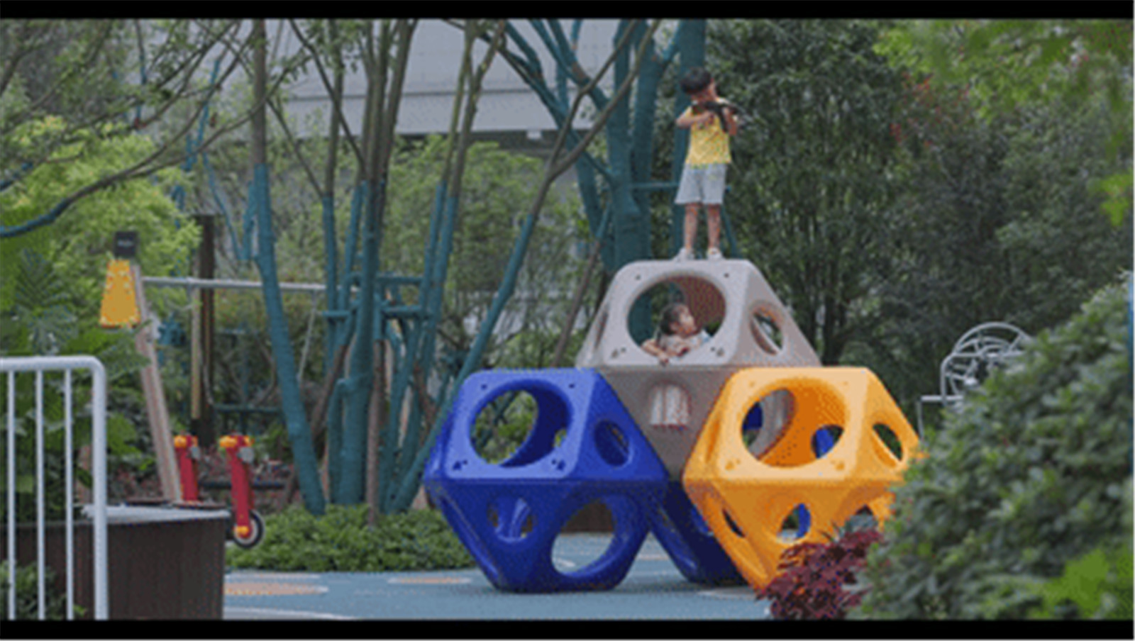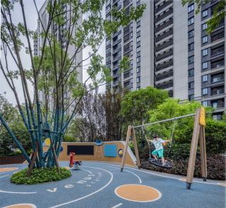 兒童活動(dòng)空間尊重場(chǎng)域,應(yīng)用植物造景的方式創(chuàng)建空間環(huán)境,綠化多為大型喬木,植物豐茂,造型有趣,夏天可以蔽日遮陰,冬天可以擋風(fēng)暖陽(yáng),營(yíng)造出愜意的林下活動(dòng)空間。