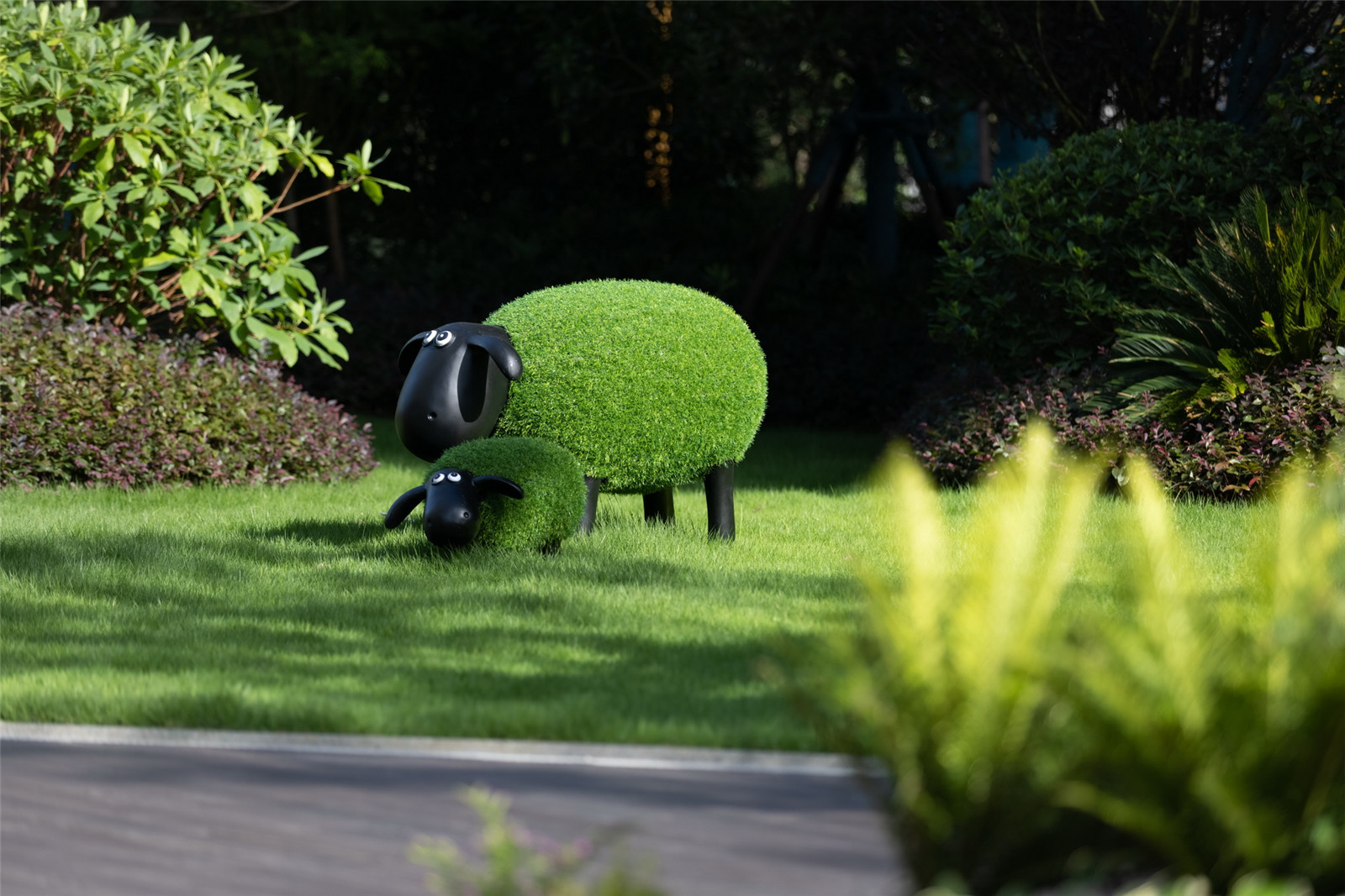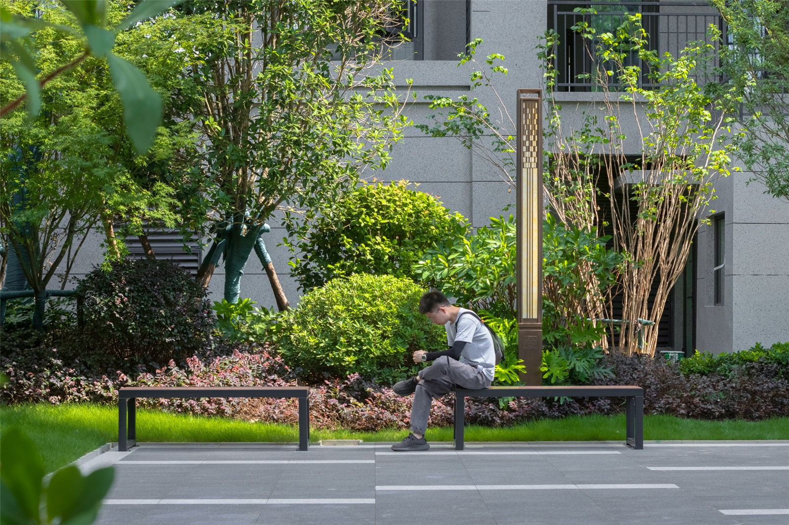 微風(fēng)拂動(dòng),樹(shù)梢上的風(fēng)鈴在陽(yáng)光下,搖曳,靈動(dòng),與草坪空間的靜謐感形成鮮明對(duì)比,園景更有層次感。