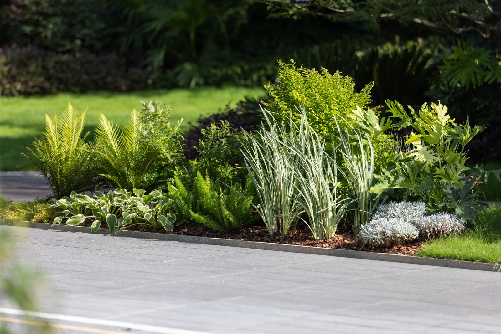 草坪空間充分利用植物與地被之間的相互咬合、滲透,模糊邊界,營(yíng)造漫步邊際的縱深感,充分利用曲線變化提高空間的利用率,達(dá)到“峰回路轉(zhuǎn),步移景異”的效果。