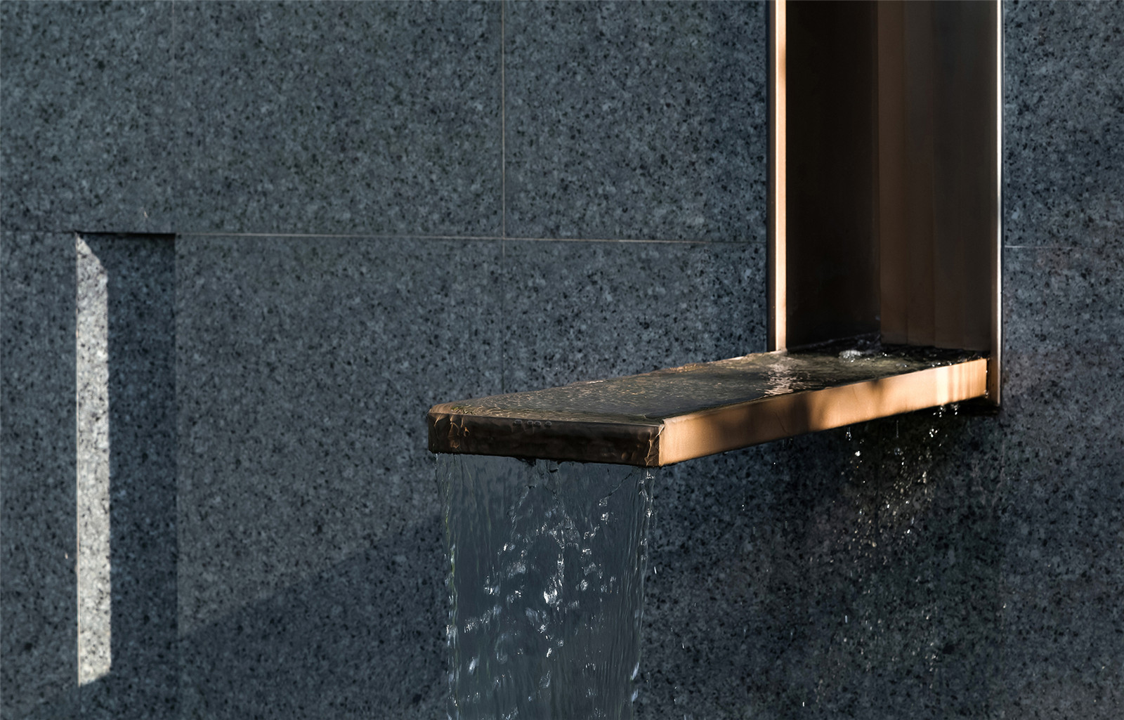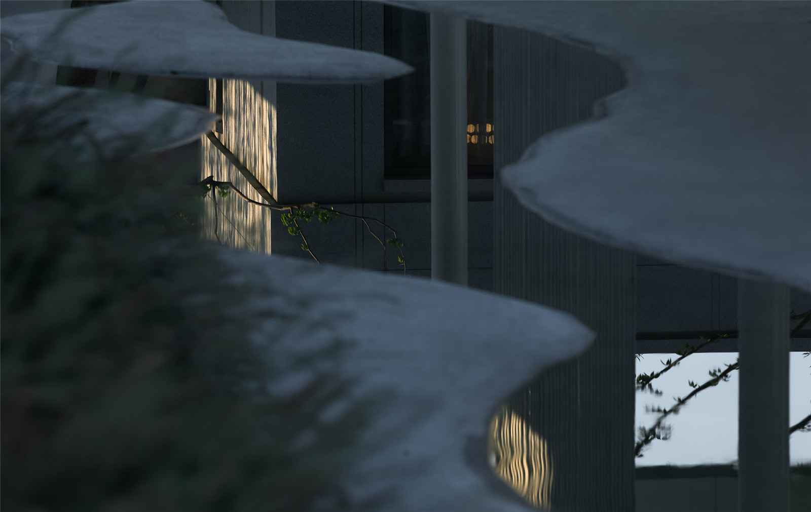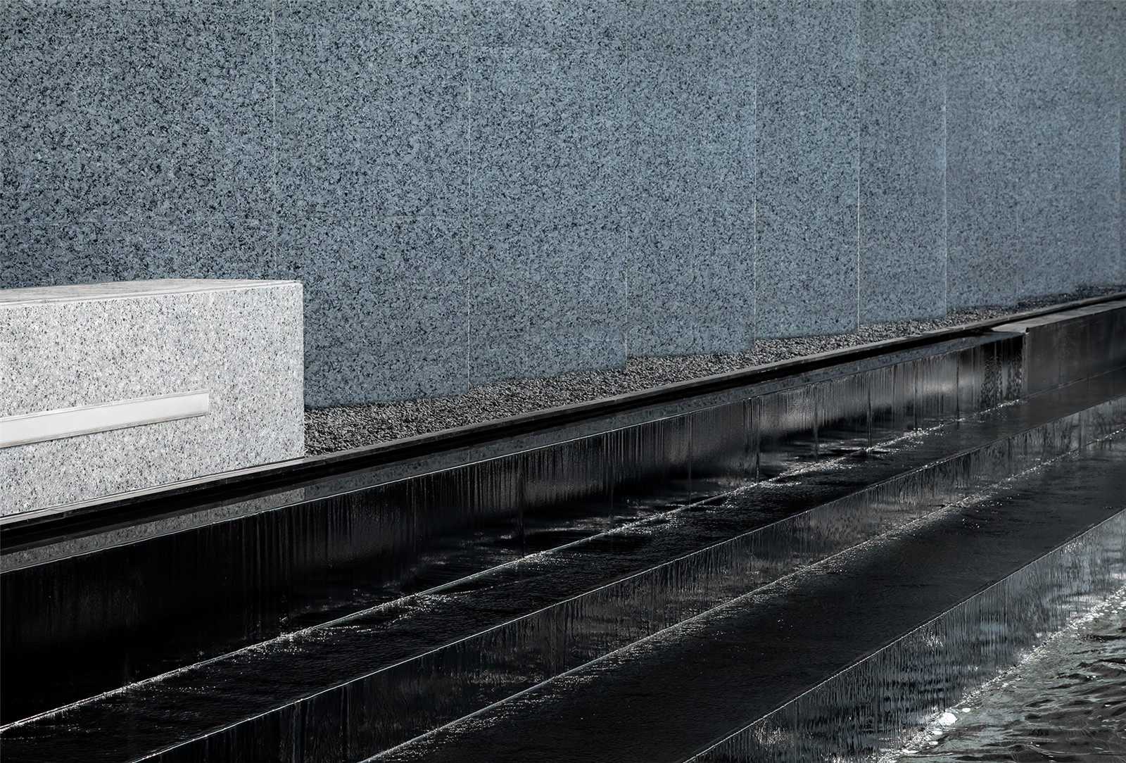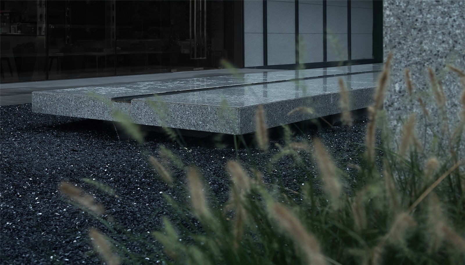 格柵圍成的屏風(fēng)內(nèi)外,是城市與山海,也是古往與今來。進(jìn)入與山水畫面展開一場純粹的對話,短暫經(jīng)歷生命的另一種形式,靜怡平和的氛圍隨著水面通達(dá)的石板漫向深處。