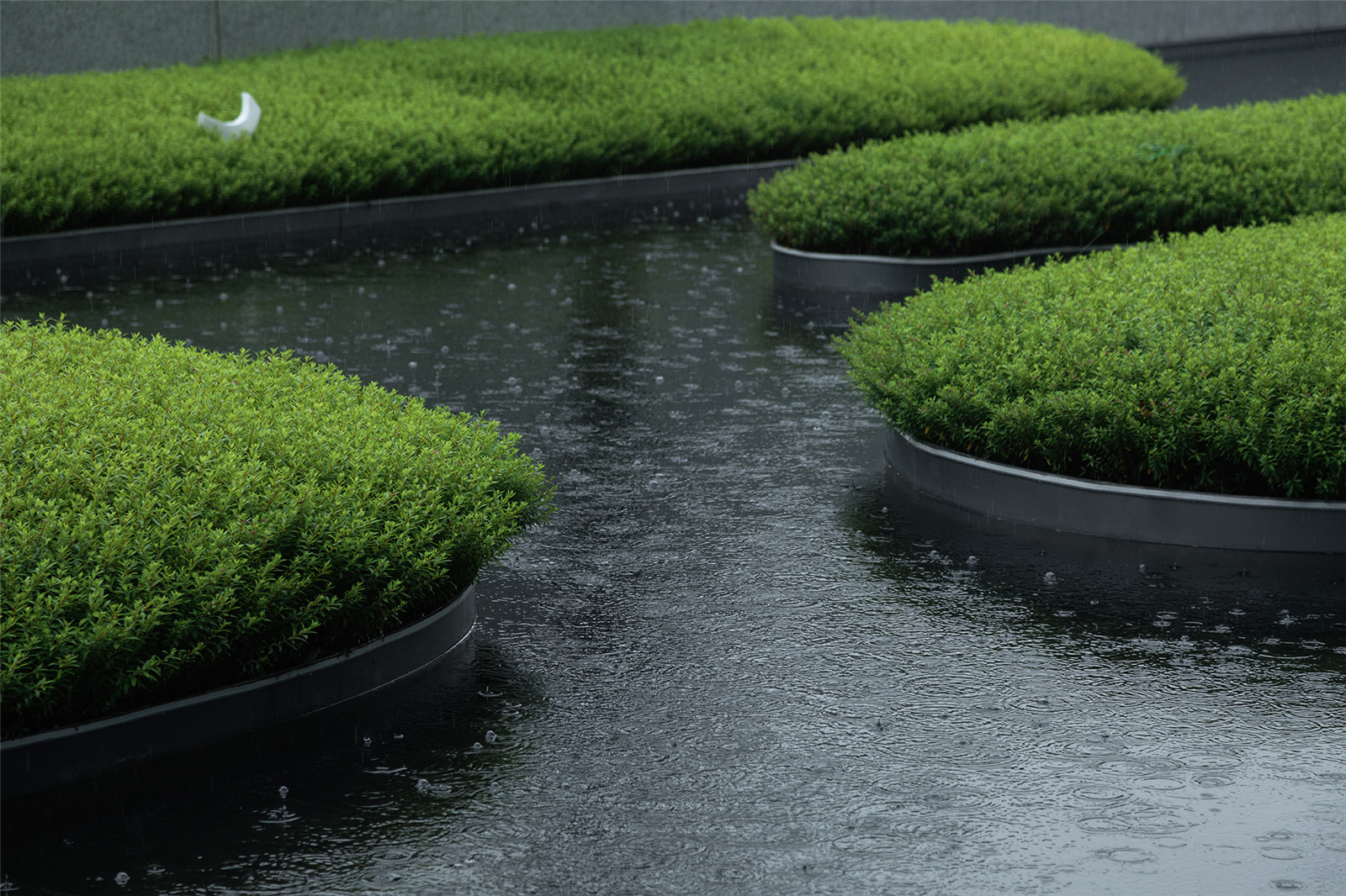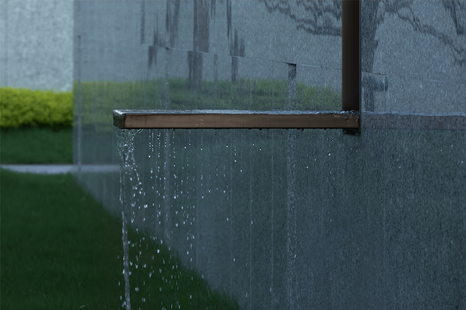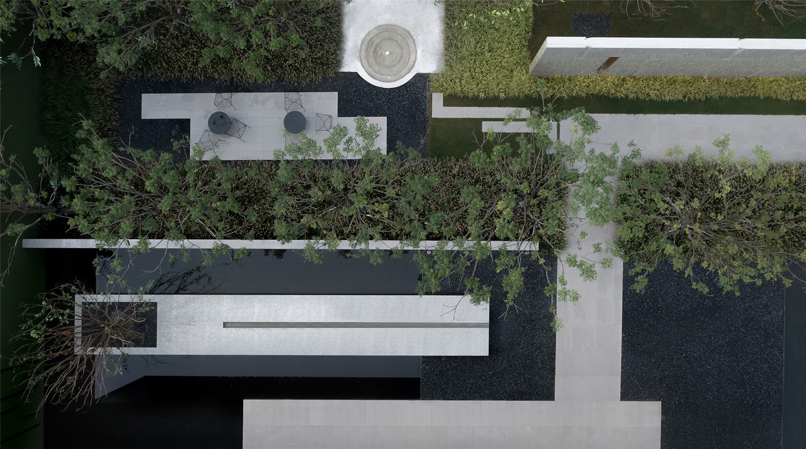 材質(zhì)與模數(shù)呼應(yīng)的景墻與跌水裝置成為了最好的過場嘉賓。綠島由水面蔓延至陸地,萬卷書閱爾,萬里路將行。
