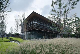 示范區(qū)后場為建成大區(qū)一角做永久保留,有別于獨立示范區(qū)的呈現(xiàn),本案景觀大區(qū)規(guī)劃先行。設(shè)計擷取“山、水、林、谷”等自然元素意象符號,融入園林設(shè)計理念,以漫游式的場景節(jié)點,將20余個主題引入園中,形成穿越中國山水的歸家禮序,真實的生活場景被提前置入示范區(qū)內(nèi)。