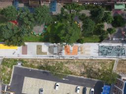 Jebong-ro 82 (Seosuk Elementary School, 26, Jebong-ro 82 beon-gil, Dong-gu, Gwangju) will be closed for traffic. In collaboration with Seoseok Elementary School, a series of their requests has been explored. That has led to multiple different pavements that can be used for sitting, painting, jumping on trampolines, and playing in the sand. By shaping these pavements in a series of letters, a true text appears, indicating people’s love for many things through ‘I LOVE’. At the same time, a neutral square space at the end of the text is maintained for everyone’s personal use, and it can even be painted and adapted like a canvas. I LOVE can thus become I LOVE KOREA, I LOVE KIM, I LOVE WALKING, I LOVE THE MAYOR, I LOVE GWANGJU, or I LOVE YOU, for example. This text can be seen from a special tribute spot at the beginning of the street. This tribute also provides access to a platform that is five meters high, with a bench and a table. From here, the gardens can be viewed and a selfie can be taken. The chalkboard space is transformed into a dance floor every evening with special lights, while love songs from Jeroen Kooijmans will be played to get people dancing – I LOVE DANCING!