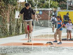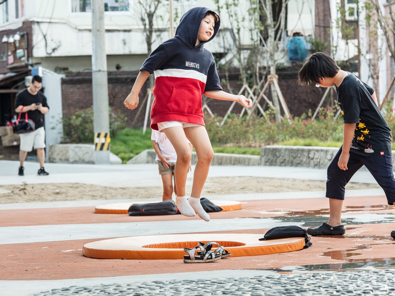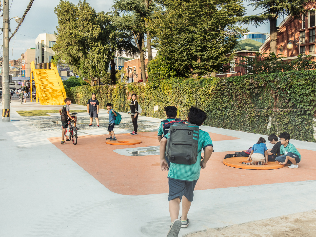 項(xiàng)目位于韓國(guó)光州,作為光州Folly街道裝置計(jì)劃第三期的作品之一,由MVRDV與Seosuk小學(xué)學(xué)生合作完成。項(xiàng)目嘗試通過對(duì)960㎡公共空間的永久性干預(yù),在兼顧美化與實(shí)用的同時(shí),鼓勵(lì)社區(qū)參與,促進(jìn)城市再生。