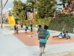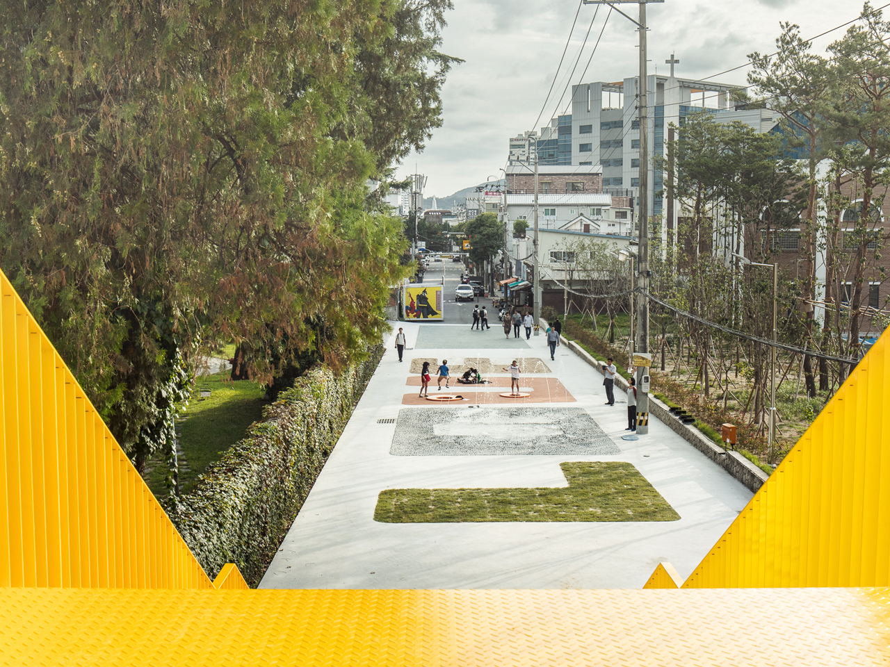 MVRDV realised I LOVE STREET in collaboration with students of the Seosuk Elementary School as one of the third edition of the Gwangju Folly The 960m2 permanent intervention explores how architecture contributes to urban regeneration by playing both decorative and functional roles in public spaces. The project was conceived in a participatory process.