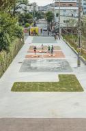 濟(jì)峰路82號(hào)(光州東區(qū)錫石小學(xué)所在)將在未來禁止機(jī)動(dòng)車通行。設(shè)計(jì)師通過與校方的溝通協(xié)商,依據(jù)他們的需求設(shè)計(jì)出一系列可以用來休憩、繪畫、跳蹦床以及玩沙的多功能人行道。場(chǎng)地利用字母組合成“I LOVE“字樣,借此表達(dá)人們對(duì)世間萬物的愛意。同時(shí),在字母組合的末尾留有一個(gè)類似畫布的廣場(chǎng)空間,人們可以在上面盡情繪畫。與旁側(cè)的“我愛”相結(jié)合,便會(huì)變成“我愛韓國(guó)”、“我愛金”、“我愛散步”、“我愛市長(zhǎng)”、“我愛光州”、“我愛你”等等字樣。設(shè)計(jì)者在不遠(yuǎn)處街道的另一端建造了一個(gè)高達(dá)五米的觀景平臺(tái),足以將創(chuàng)意文字盡收眼底。平臺(tái)上安放的桌椅供人們停留于此,不管是用來欣賞花園還是自拍留念都很合適。當(dāng)夜幕降臨,繪板空間便會(huì)搖身一變成為一個(gè)配有特殊燈效的舞池,伴隨著杰倫?庫伊曼斯(Jeroen Kooijmans)的情歌,人們將沉浸在舞蹈的世界里——我愛跳舞!