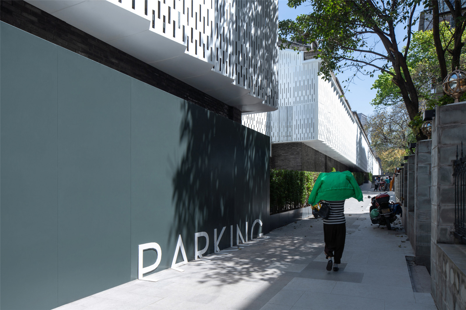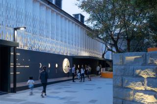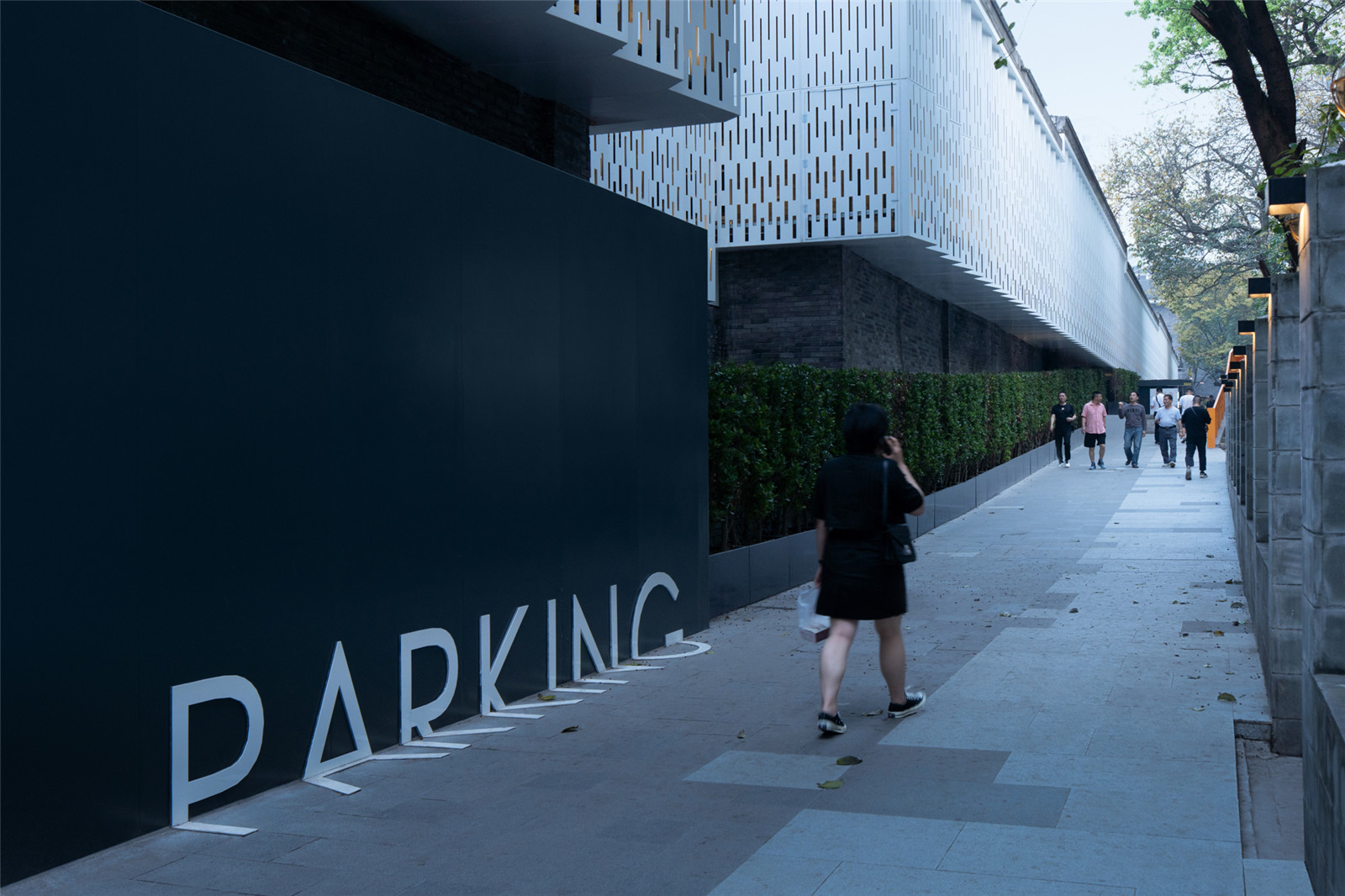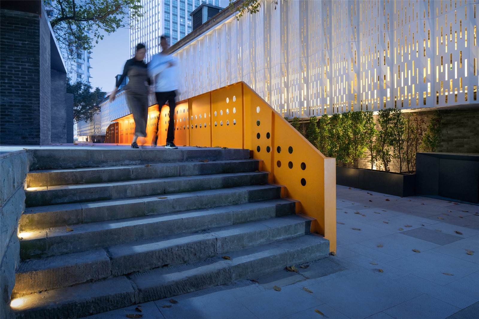 對萬達(dá)商業(yè)建筑的背街立面,設(shè)計(jì)保留大部分原有墻體,且延用本土化的磚,這些材料體現(xiàn)了時(shí)間的流逝、與地方的聯(lián)系以及生活的真實(shí)性。同時(shí)引入現(xiàn)代玻璃與鋼材料,形成傳統(tǒng)語言與現(xiàn)代工藝的對比,更具時(shí)代沖擊感,體現(xiàn)文脈的延續(xù)性。保留并修繕原有青磚墻面,空調(diào)外掛機(jī)位設(shè)計(jì)外包穿孔板 ,形成有韻律的立面。