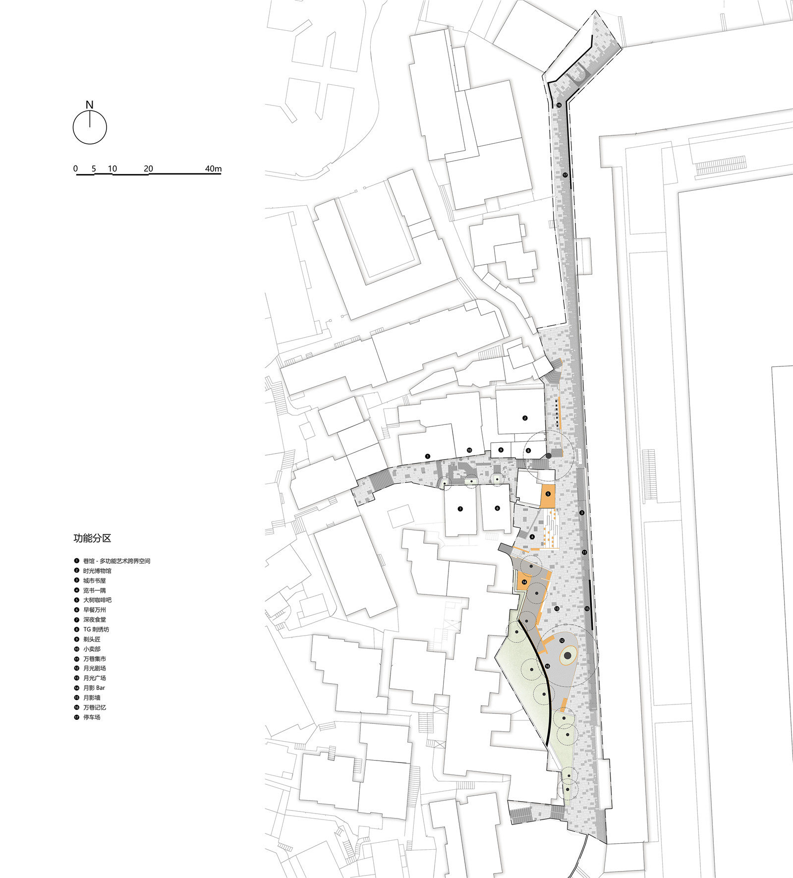 而本次改造的場地,正是一個很好的契機(jī),它處在城市新與舊空間的一個交界面上,前靠新商業(yè),背靠著一片老舊的街巷居民區(qū),對于整個老城區(qū)來說,它是一個很小的點(diǎn),但這個“點(diǎn)式” 街巷微空間,聯(lián)系著上下半城,聯(lián)系著現(xiàn)代街區(qū)與老舊生活區(qū),聯(lián)系著母城的過往,我們設(shè)計(jì)希望尊重現(xiàn)有巷道肌理與風(fēng)貌,實(shí)現(xiàn)傳統(tǒng)與新興業(yè)態(tài)融合共生。通過“點(diǎn)式”街巷的改造,促進(jìn)城市的有機(jī)微更新,產(chǎn)生網(wǎng)絡(luò)化觸發(fā)效應(yīng),促使社會資源共同參與的主動改造。