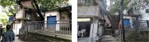 ▼保留場地的大樹,在立面上保留居民建筑的肌理