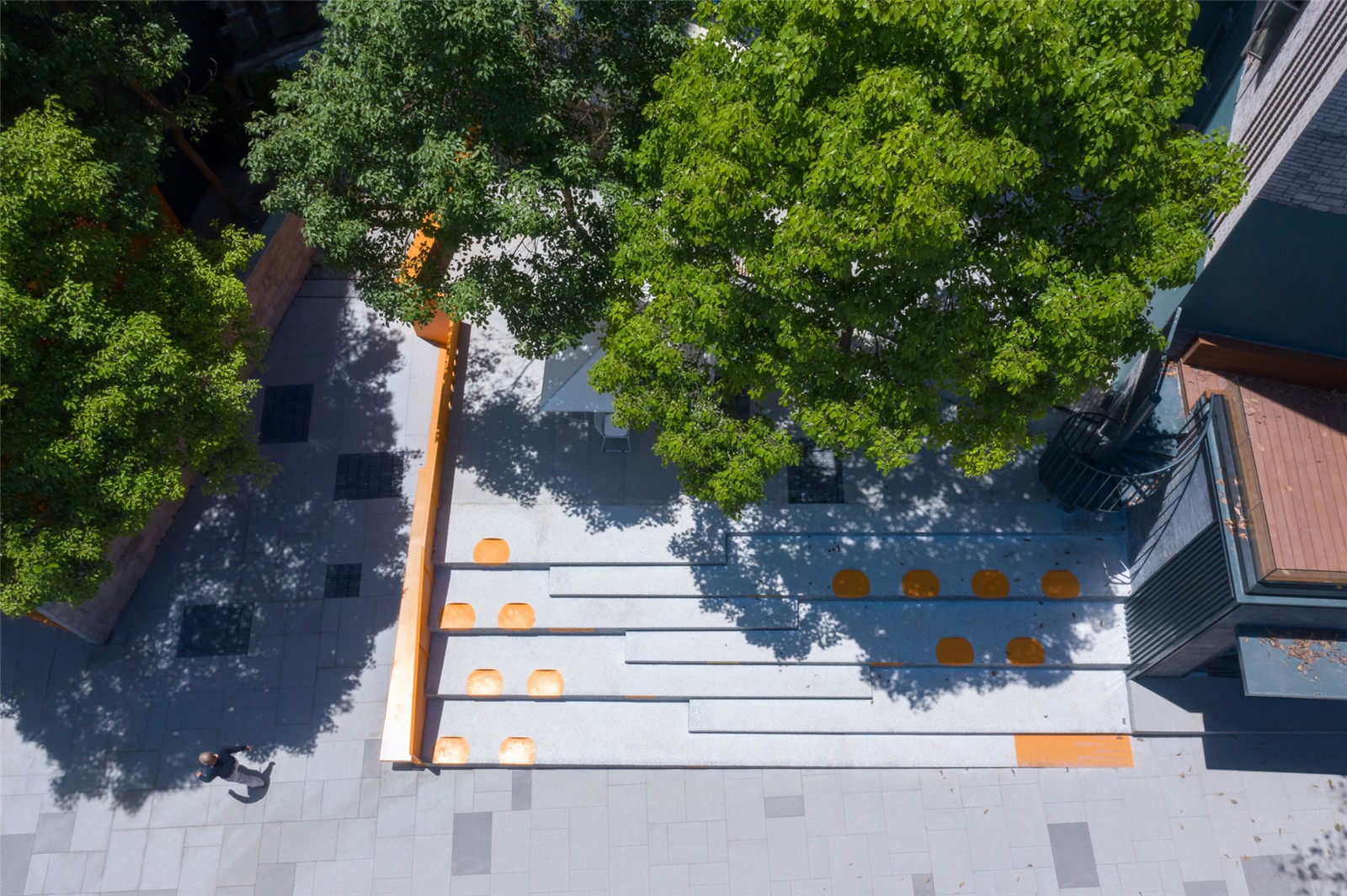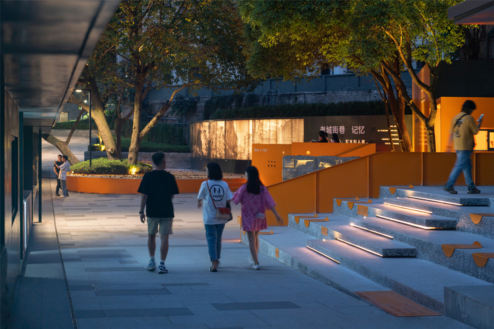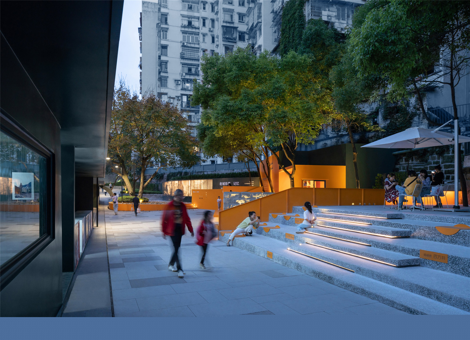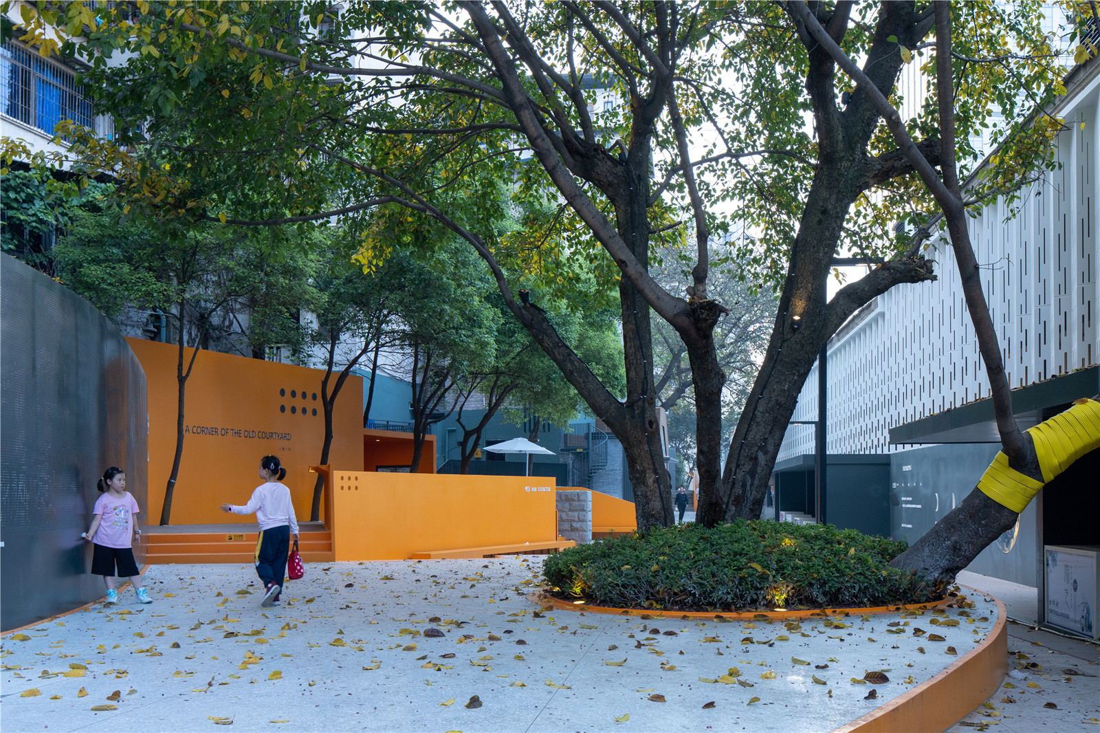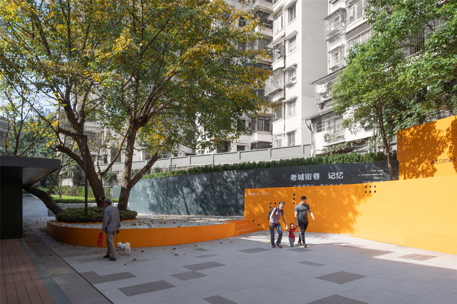 設(shè)計(jì)基于現(xiàn)狀出發(fā),保留了大量老的基底,對場地原有結(jié)構(gòu)、樹木保留,進(jìn)行重新解讀與包裝,圍繞現(xiàn)有的黃葛樹打造月光劇場,城市書屋和覽書一隅等空間。將原本雜亂的、消極的空間進(jìn)行新的詮釋。不僅滿足原有居民的生活功能,服務(wù)于本地市民生活活動。還增加更多可能性的場地功能,以吧臺和坐凳的形式,呈現(xiàn)室外書吧這樣的小空間及外擺空間,提高空間的利用率,為人們提供停留、交談、活動的休閑平臺。讓本地居民在這個空間里喚起記憶,延續(xù)他們原有的生活方式同時(shí)滿足更多年輕人的審美喜好。通過設(shè)計(jì)的手法進(jìn)行升級的同時(shí),讓整個空間更富有層次,變成一個積極性,包容性,多元化的空間,在延續(xù)原有居民生活方式的同時(shí),能夠吸納更多年輕人進(jìn)入空間。