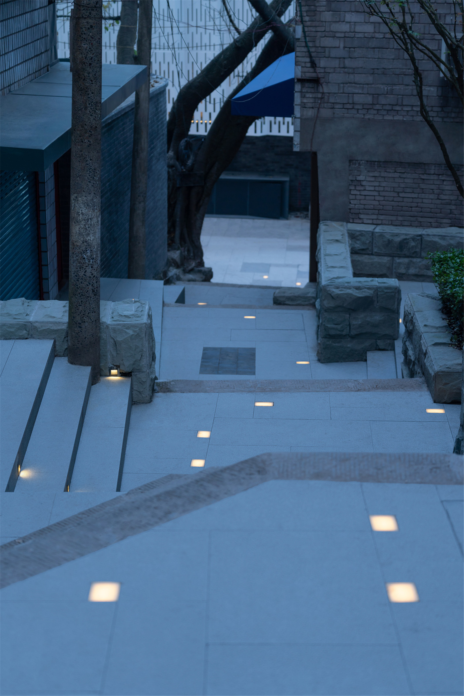 ▼巷道結(jié)合燈光引導(dǎo),給保留的街巷肌理與古樹增添一絲靜謐