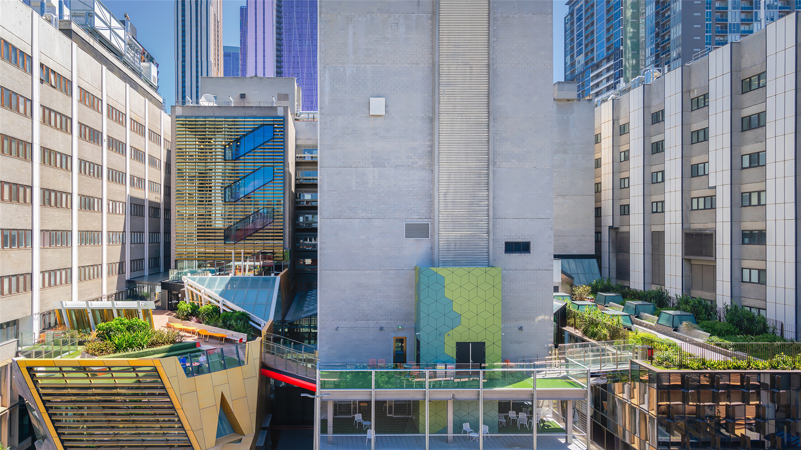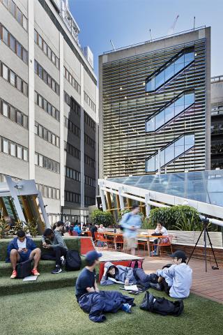 TCL was commissioned as landscape architects and urban designers to ensure the public realm contributed to the revitalisation and dynamism of the precinct. The project required new connecting laneways, student spaces along the Bowen Lane Terrace and significant new roof garden landscapes.