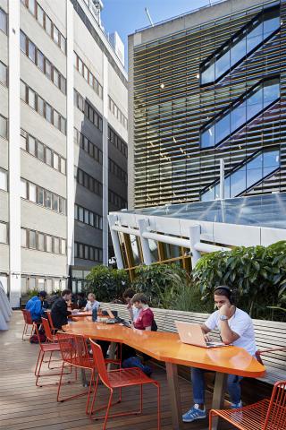 戶外露臺和花園與改造過的圖書館自然地銜接在一起,確保新學術(shù)街項目總體上比以前多了40%的學生空間。