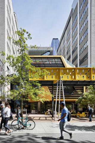 ▼黃色梁架下成為新的城市步道區(qū)