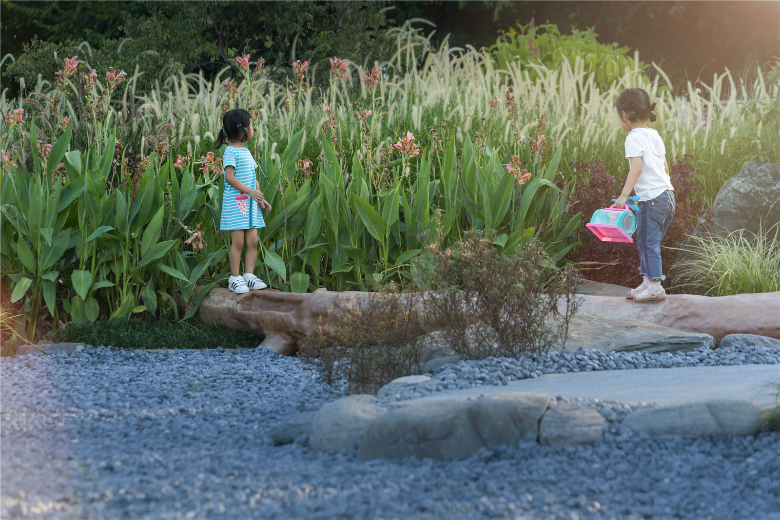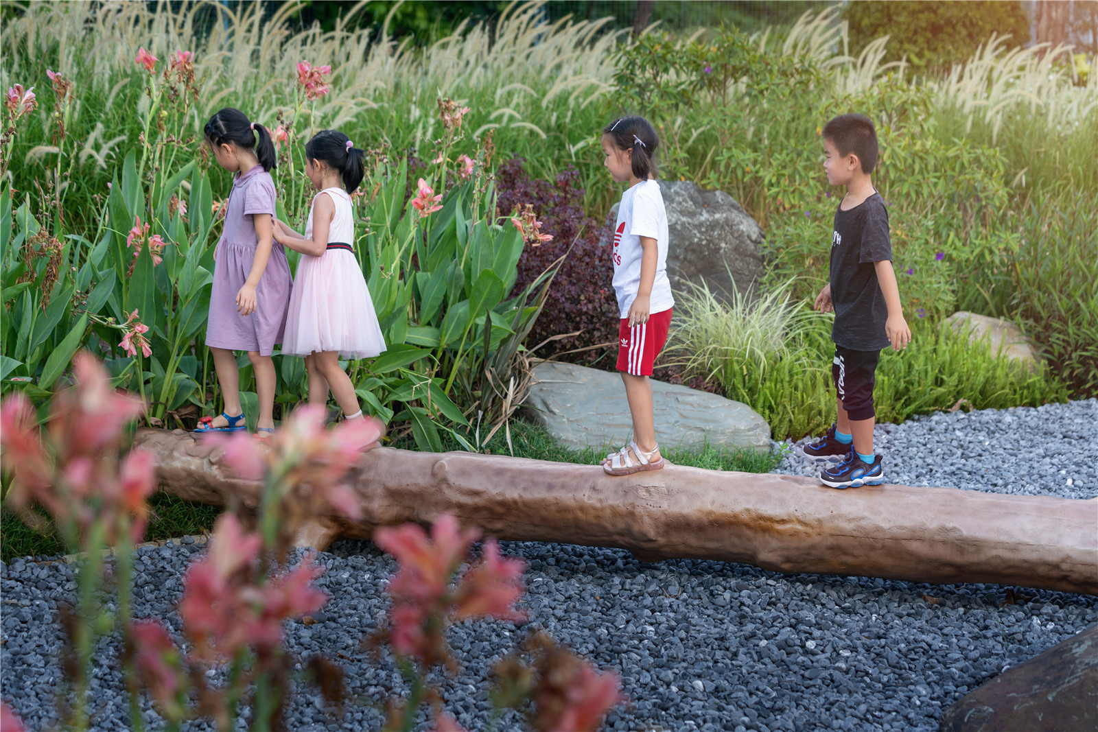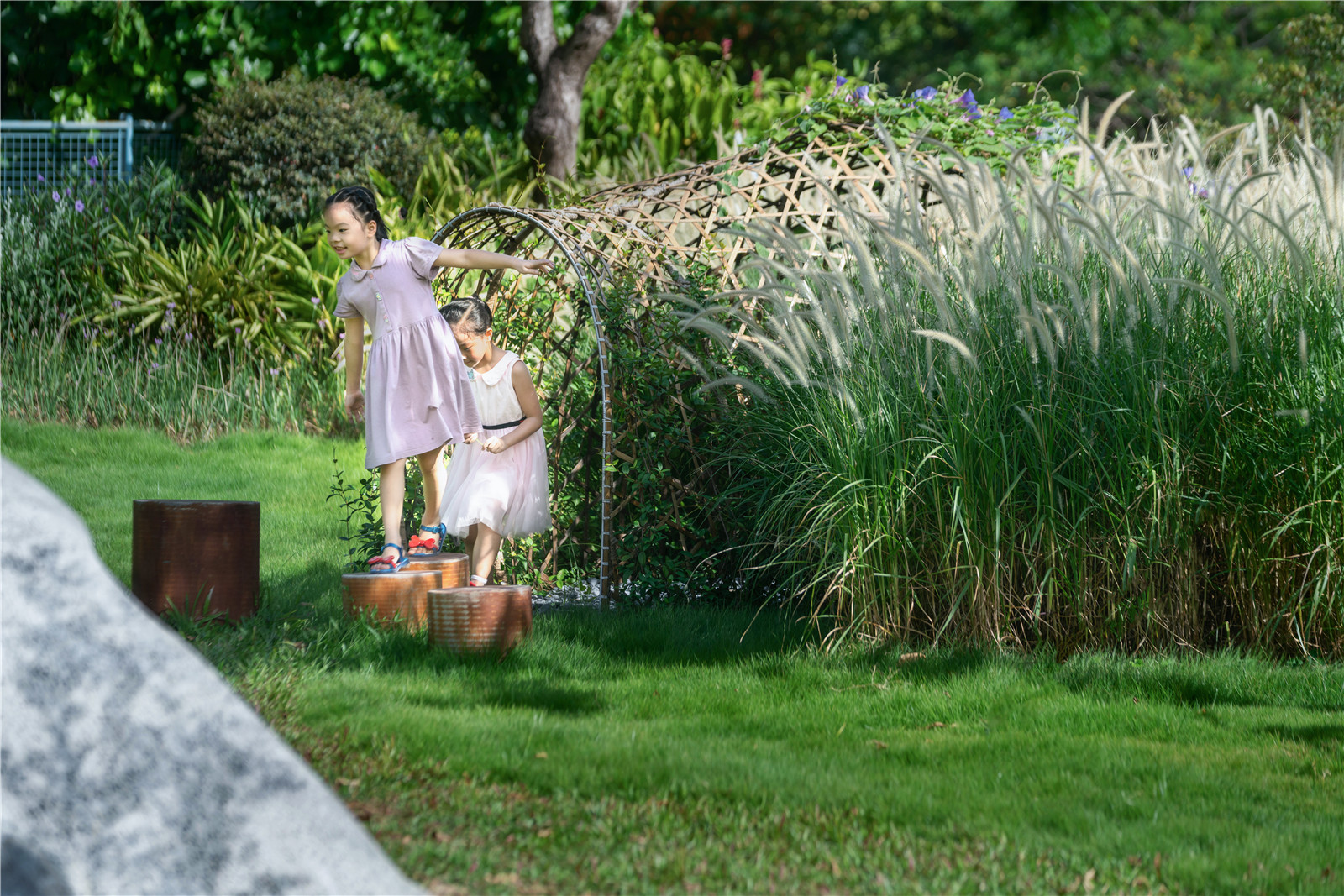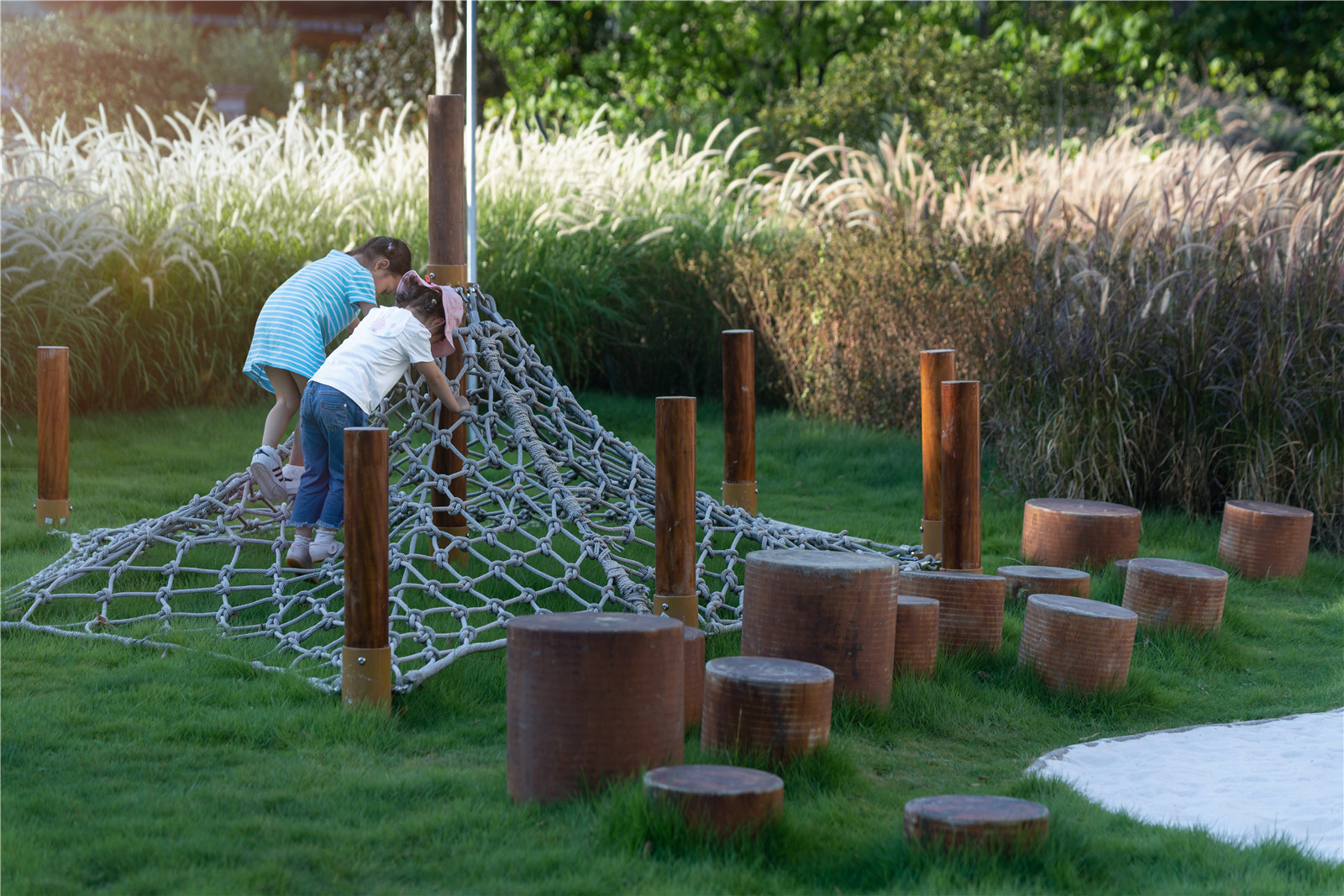 無疑,萬科建研中心實(shí)驗(yàn)基地,為落地這樣的自然模塊提供了理想的場(chǎng)地。在已有兒童友好社區(qū)產(chǎn)品的研究基礎(chǔ)上,萬科攜手林德設(shè)計(jì),共同打造真實(shí)的“自然秘密花園”,讓孩子們自由的穿梭在自然生態(tài)的場(chǎng)地之中。嬉鬧,游戲的各種美好的場(chǎng)景不再只是在設(shè)計(jì)師腦海中的美好想象,長(zhǎng)期共同研發(fā)中探索的各種與自然的可能,終于有了落地實(shí)踐的機(jī)會(huì)。