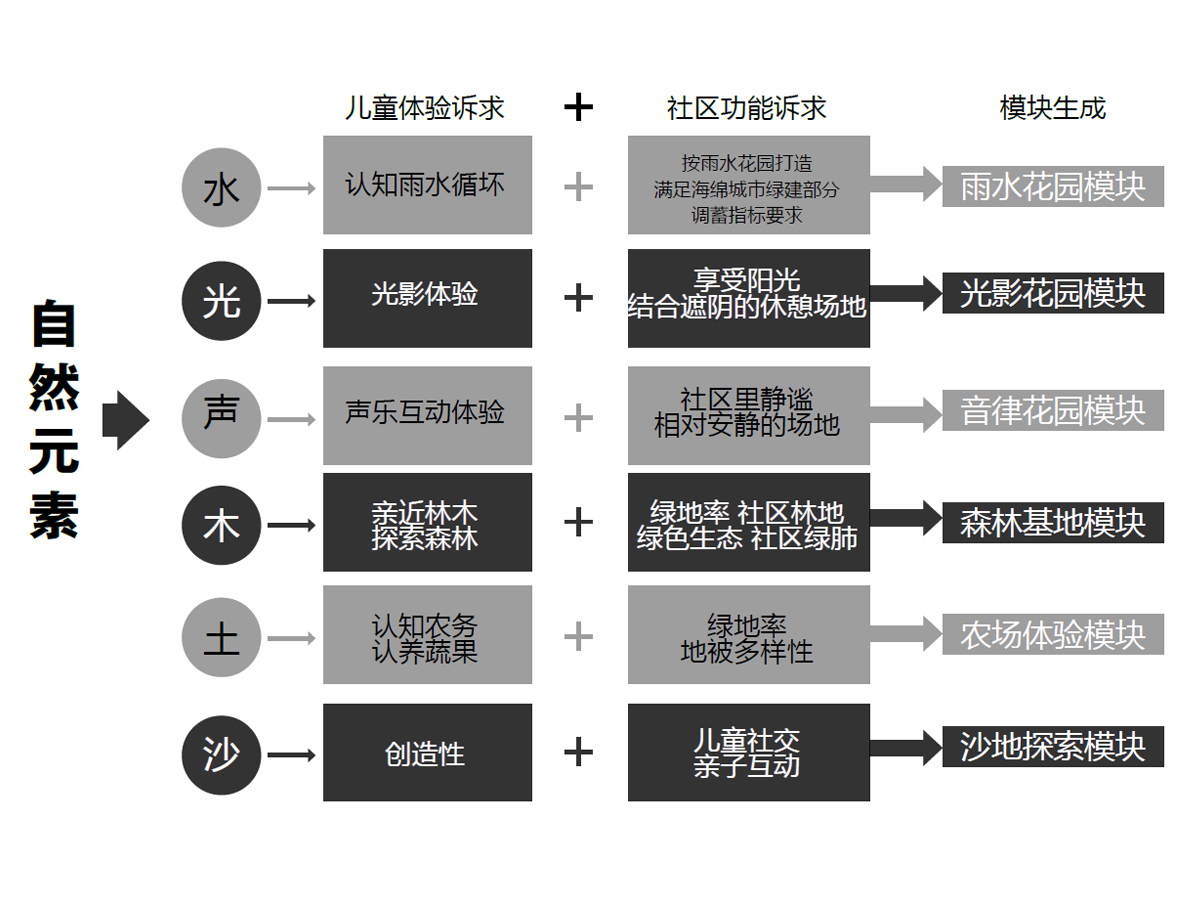 No matter how the development of science and technology, all artificial colors can not replace natural colors. We should not deprive children of the right to perceive sunrise and sunset, spring and autumn, wind, frost, rain, snow, flowers, insects and fish. It is also expected that the design concept of the natural module in the future and the scene of landing in one community can let children have more opportunities to contact with nature.