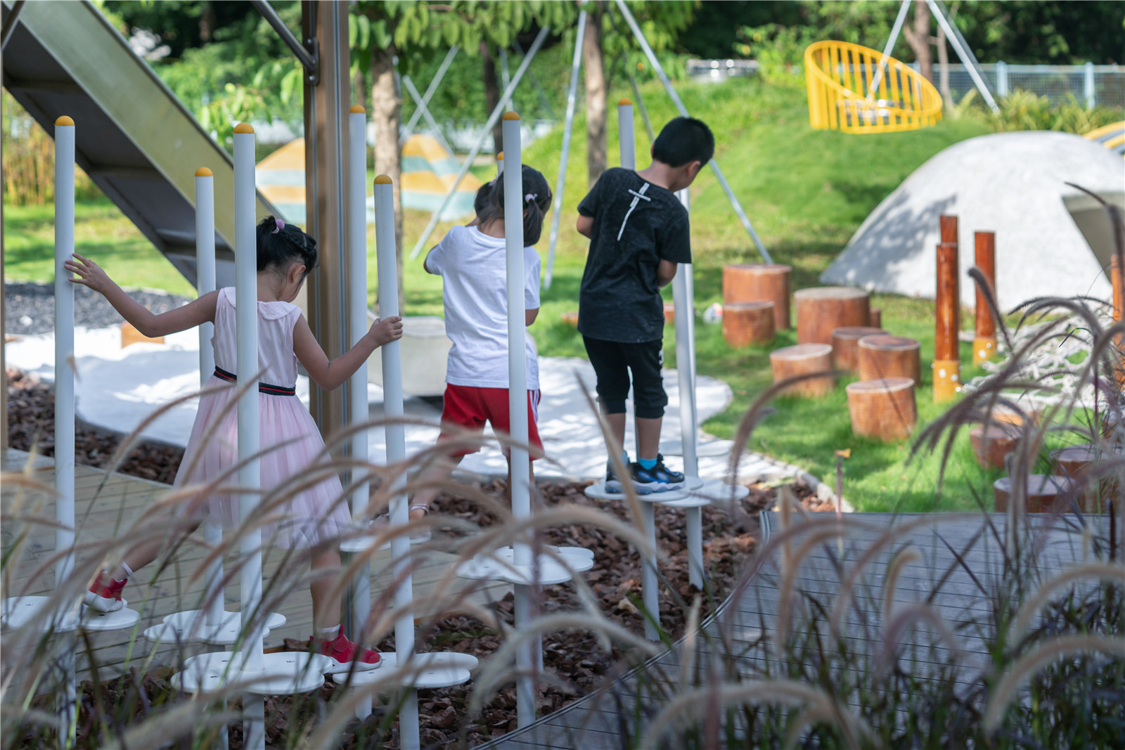 In order to solve the common problems in the above-mentioned community landscape design and make a breakthrough in the existing children's playground, under the multi-party linkage of Vanke, we tried to land a children's playground with the theme of "in nature" - children's nature module in Dongguan Vanke architectural research center.