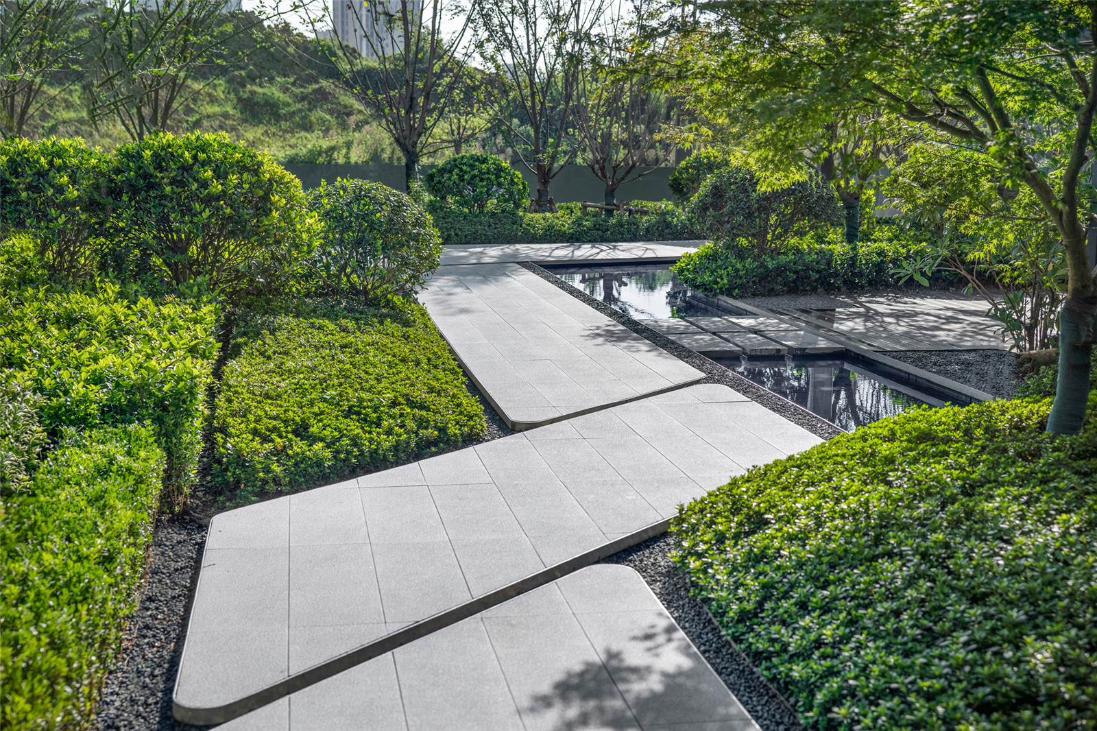 沿小徑繼續(xù)向前,水景逐漸消失,空間突然收緊,目之所及盡是層次豐富而又細(xì)膩的植被。