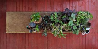 A seasonal plant booth, A Kitchen Garden, basil, rosemary, thyme, perilla, chives, aloe vera