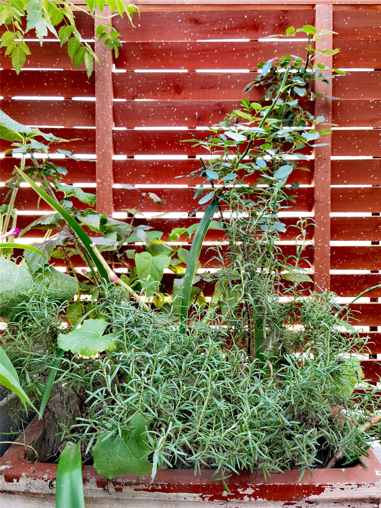 為了研究濕地植物和海綿城市,我們開始在各種大罐子里試種濕地植物,千屈菜、香蒲、蘆葦、水蔥、再力花等等。在日照最好的東北角處移栽了好養(yǎng)活的凌霄苗、爬藤薔薇、七里香,北側(cè)增加了擋風(fēng)的木格柵,希望今年的爬藤可以越冬,這個(gè)角落還撒了些蜀葵種子、紫蘇種子、羅勒小苗、兩顆蘆薈。