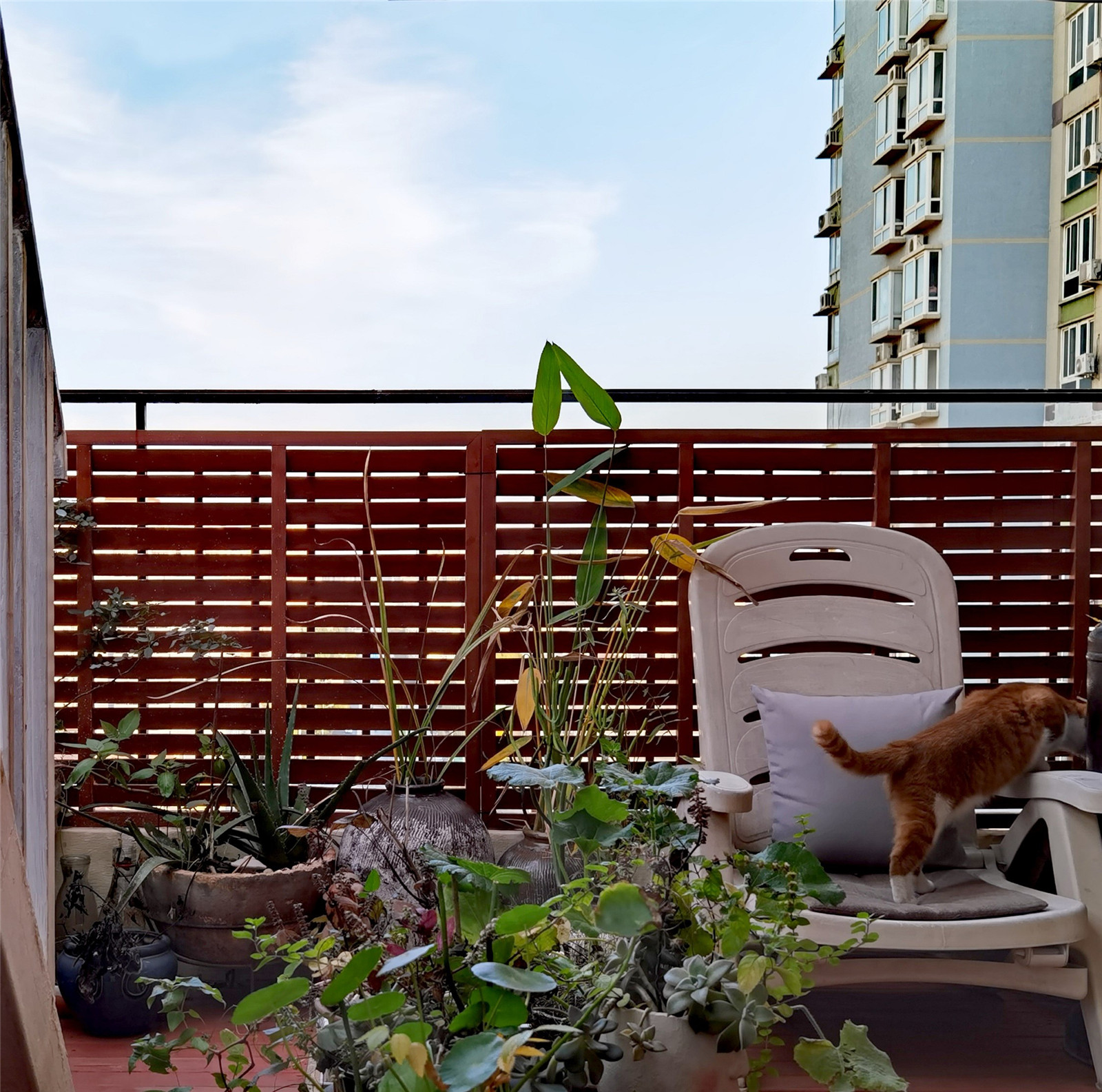 In this micro-renovation, apart from a set of outdoor sofas, a small bamboo table, and windproof wooden grilles, no new items have been added to the small courtyard. In line with the concept of environmental protection and sustainable development, we did not choose some difficult-to-maintain plants, but tried more low-maintenance plants, interesting natural wilderness plants, and pursued the harmonious coexistence of people and nature in the city.