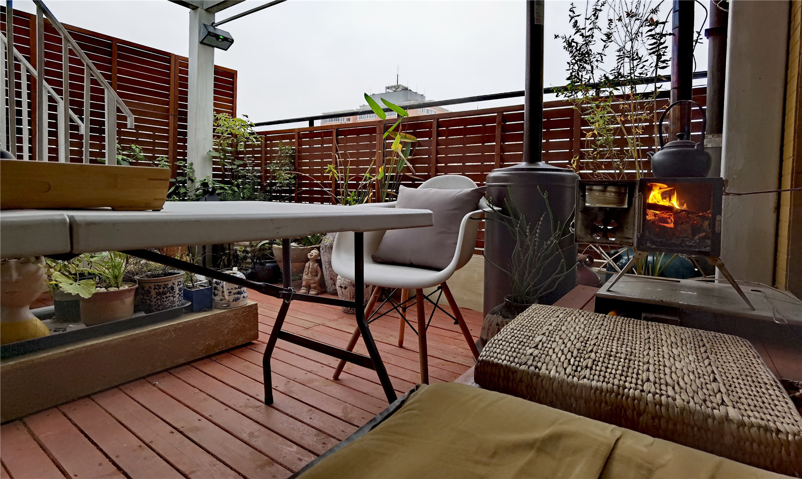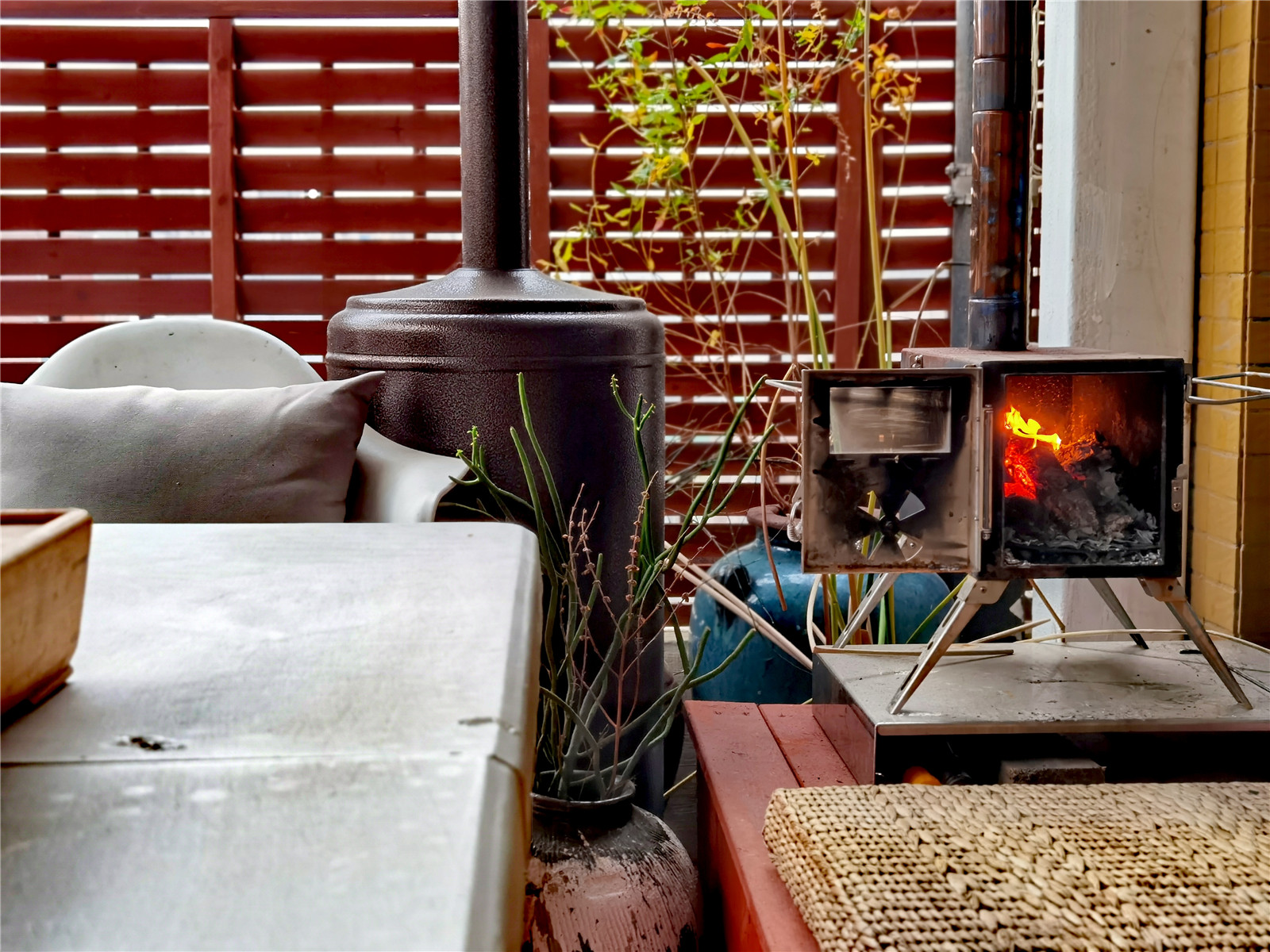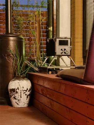 ▼戶外帳篷爐是戶外露營時(shí)用的,于是平時(shí)就可以安置在這里,讓小院充滿了戶外的味道。