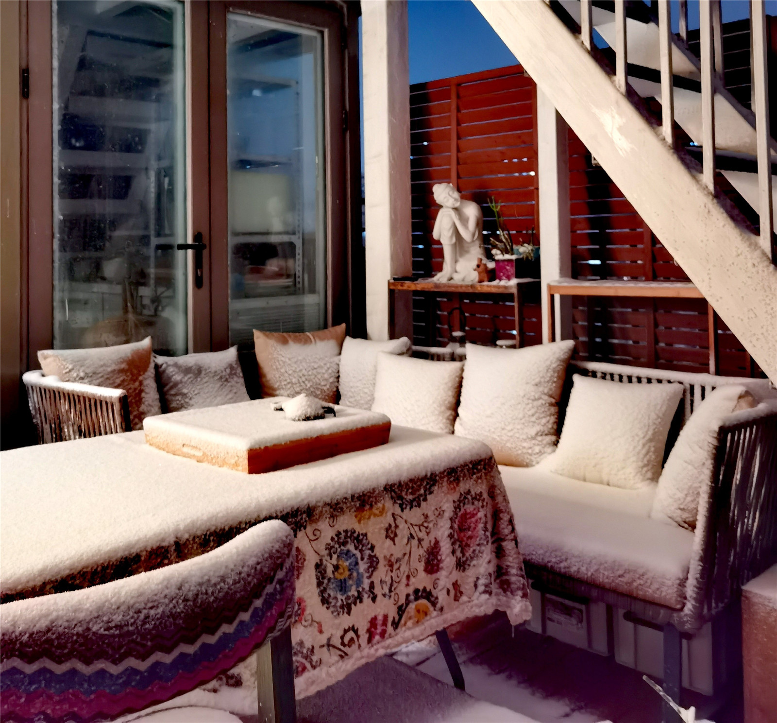 冬季,11、12、1、2月是天臺(tái)小院絕對(duì)的冬季,10月底11月初要把一部分植物搬入室內(nèi),各就各位,整個(gè)冬季,植物可以在室內(nèi)繼續(xù)熱鬧,散發(fā)著自然的氣息。