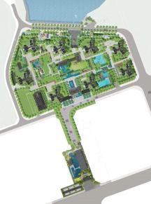 疊臺樂水是整個園區(qū)的中心區(qū)域,景觀豐富而有節(jié)奏,有層次的孤植樹木與林下景觀自成群落,綠蔭與碧水相映襯,休閑木平臺點綴其中,有小徑通往,可穿林戲水,臨湖而照。