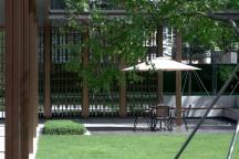 陽光草坪與木平臺的設置增添了空間的休閑與愜意,呈現(xiàn)出傳統(tǒng)院落的親切與自然。