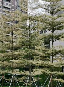 在現(xiàn)場種植大喬時,根據游覽動線,視線停留點,找到樹形最佳觀賞面,把每一株樹形的最佳面展示在最佳觀賞點上,最終成型。入口水景邊烏桕林高低錯落,前后虛實結合,每一棵烏桕的飄逸姿態(tài)與水景搭配,完美展現(xiàn)“樹蔭照水愛晴柔”的美好意境,層層遞進,給整個空間帶來強烈的縱深感,充滿變化和靈動性,營造出極具沉浸感和自然感染力的景觀情境。