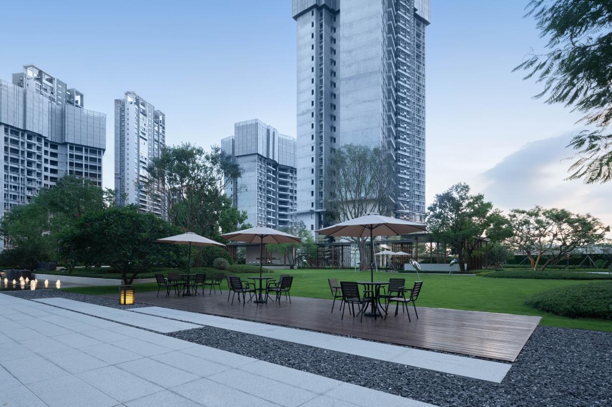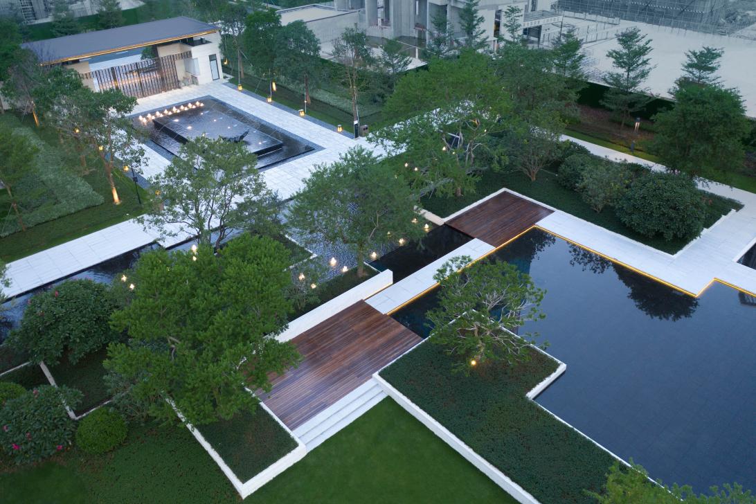 金眾柏悅公館位于深莞中心,座落塘坑水庫東側,擁有7500畝的一線湖景資源,是塘廈中心湖最后一塊住宅用地。希爾景觀設計團隊以現(xiàn)代手法對傳統(tǒng)美學進行再設計,提出“泛舟江湖,寄情山水;山止川行,景行東方。”的設計主題,以山水湖居,開啟現(xiàn)代東方的美好新生活。