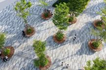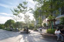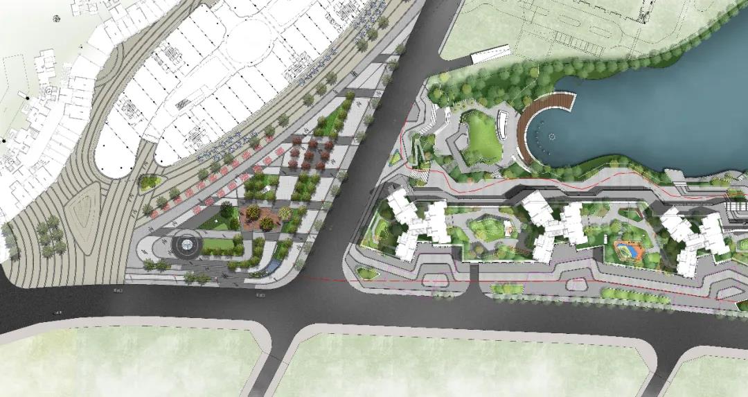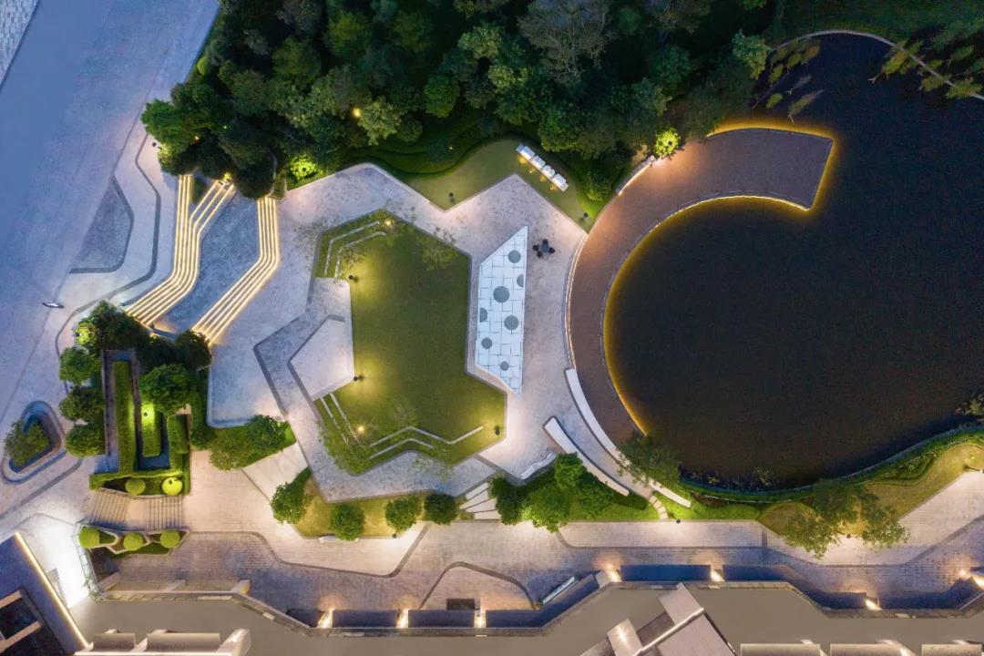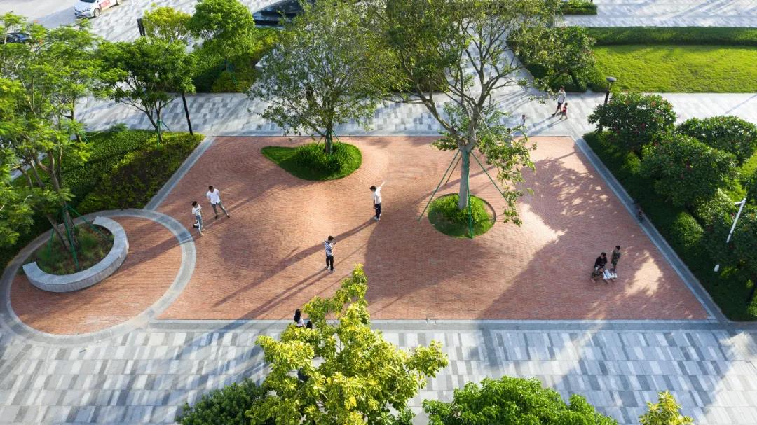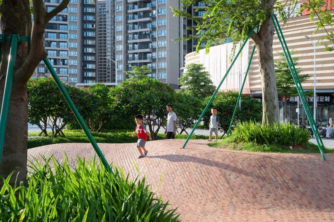 契合當(dāng)下城市人回歸自然的訴求,景觀將普通的街角小公園打造成為城市森活空間。設(shè)計(jì)突出自然元素,以趣味性的地形設(shè)置,可親近的水景,增強(qiáng)廣場(chǎng)的參與性和可玩性,與街區(qū)配套一起構(gòu)建完善的綠色空間系統(tǒng)。