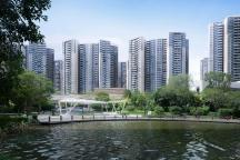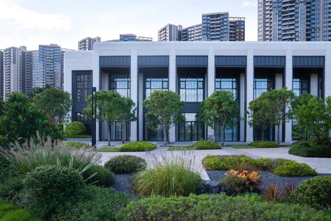 湖岸樓體建筑為現(xiàn)代風(fēng)格,布局設(shè)計(jì)采用“一字型”手法,簡(jiǎn)潔的基礎(chǔ)之上,細(xì)部反復(fù)強(qiáng)調(diào)的豎向線條令立面具有層次感,橫豎線條的微妙變化豐富了現(xiàn)代感。具有尺度感的豎向利落線條亦起引導(dǎo)視覺(jué)作用,與景觀語(yǔ)言構(gòu)成密切的聯(lián)系。
