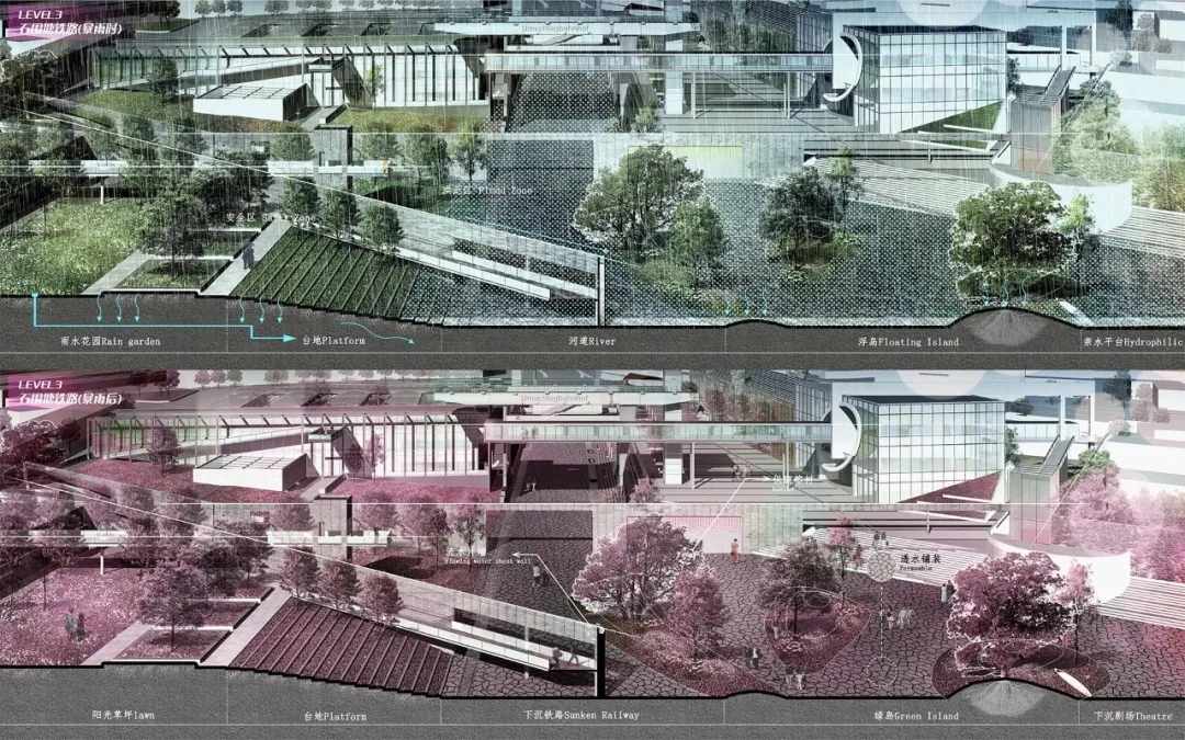 本設(shè)計(jì)通過對(duì)廢棄火車站及其城中村雨洪、文化雙重韌性空間的塑造,改善當(dāng)?shù)鼐用裆顥l件,從而完成了針對(duì)后疫情時(shí)代下對(duì)“石圍塘”這一集中了“工業(yè)遺產(chǎn)”、“城中村”、“內(nèi)澇疫病”等多重?zé)狳c(diǎn)問題下的“城市更新”的設(shè)計(jì)探索。