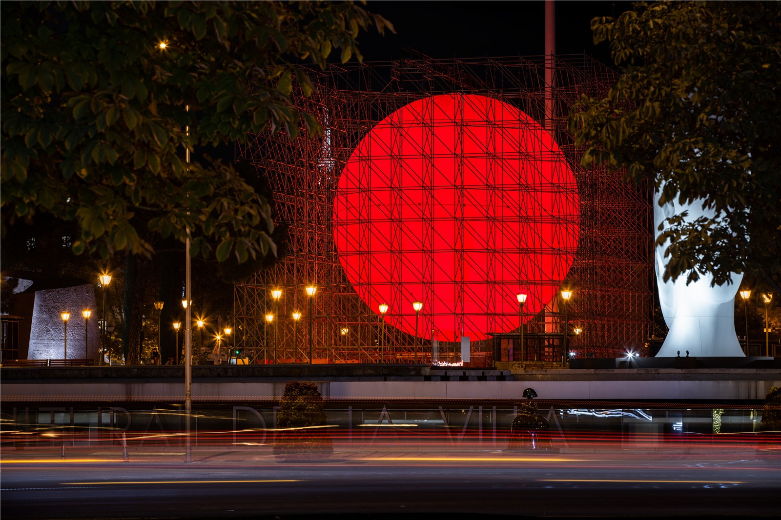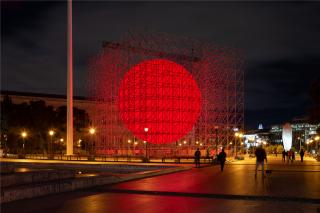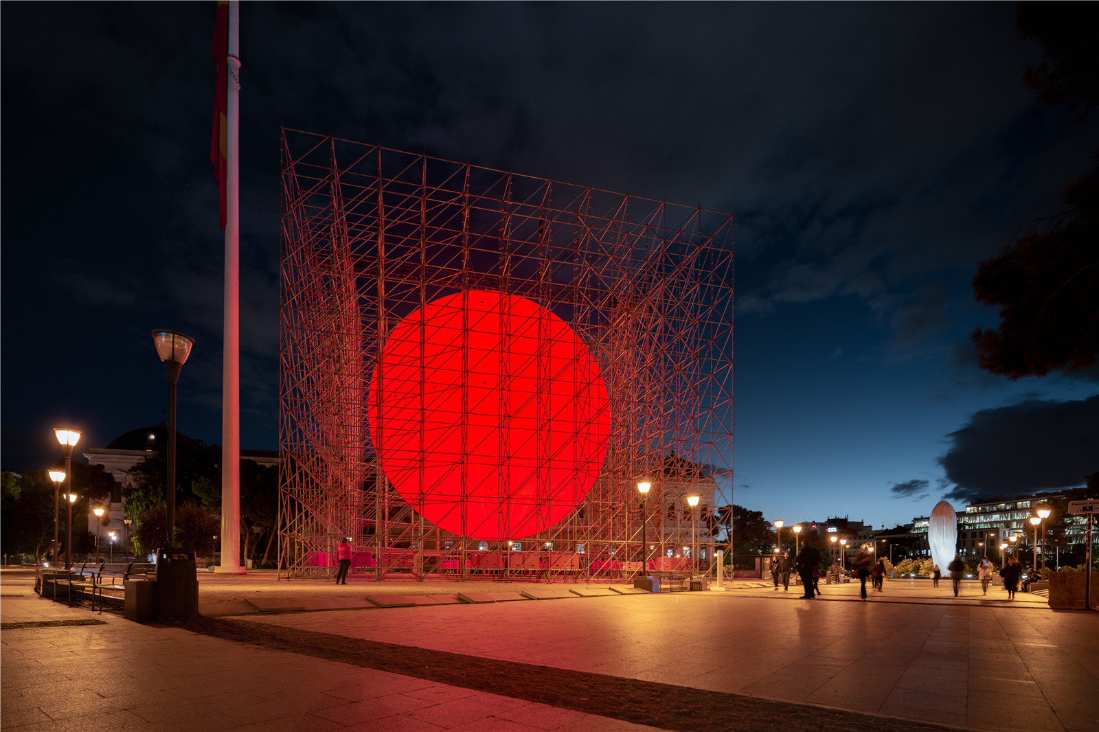 這兩個簡單的幾何元素(球體和立方體)組成一個近25米高的大型建筑,安裝在馬德里的科隆廣場上。這種強烈的視覺表達經(jīng)由球體發(fā)出的明亮紅光,讓人們幾乎可以感覺到作品理念所要傳達的巨大熱量。在歐洲,哥倫布精神代表著探索與希望,紅色球體代表著生命與陽光,二者合一代表了生存與生活。
