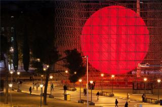 The luminous red sphere is deeply embedded in the structure of the building ? Ruben P Bescos