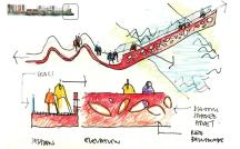 景觀的設(shè)計(jì)是通過(guò)分層的四個(gè)不同的區(qū)域來(lái)加強(qiáng)濱水體驗(yàn)的創(chuàng)造,并首次實(shí)現(xiàn)了對(duì)河流的可達(dá)性。這些線性區(qū)域采用了抽象的河岸形態(tài),沿河岸分布著草坪、咖啡館、體育公園和活動(dòng)廣場(chǎng)的創(chuàng)新活動(dòng)區(qū)域。