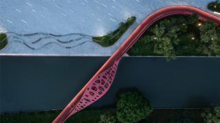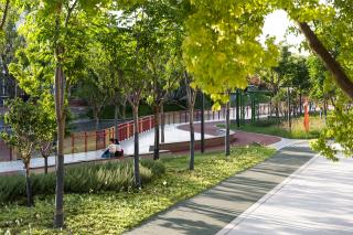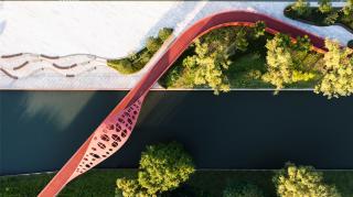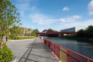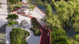 河岸的設(shè)計(jì)包括連續(xù)的綠色帶狀步道、跑道和自行車道以及三座人行橋。這些設(shè)施將社區(qū)中的住宅、教育和商業(yè)連接在一起。