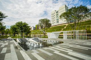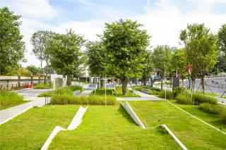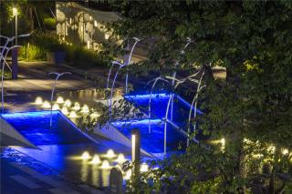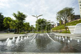 The water feature is the core element of the plaza. Art waterscape is a static scene, like a woman sitting on the windowsill watching rain hit eaves; The central fountain water feature is a moving scene, seems like people talking and startling the egret.