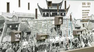 People in the time floating shadow landscape wall to open a traditional settlement in the cultural and historical context of the visit path.