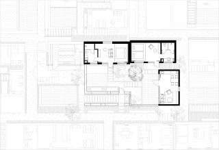The fourth courtyard is located on the westernmost side of the second row and is designed to incorporate the original courtyard frontage into the courtyard itself as a landscaped pathway before entering the home. The flow of the pathway is through the landscaped pathway first into the public space on the south side and through the public space into the inner courtyard before reaching the bedrooms on the north side.