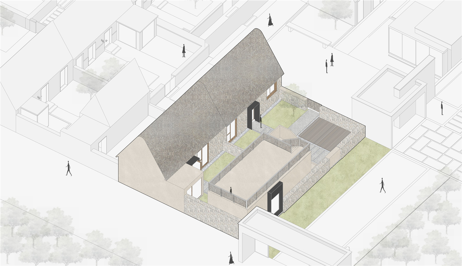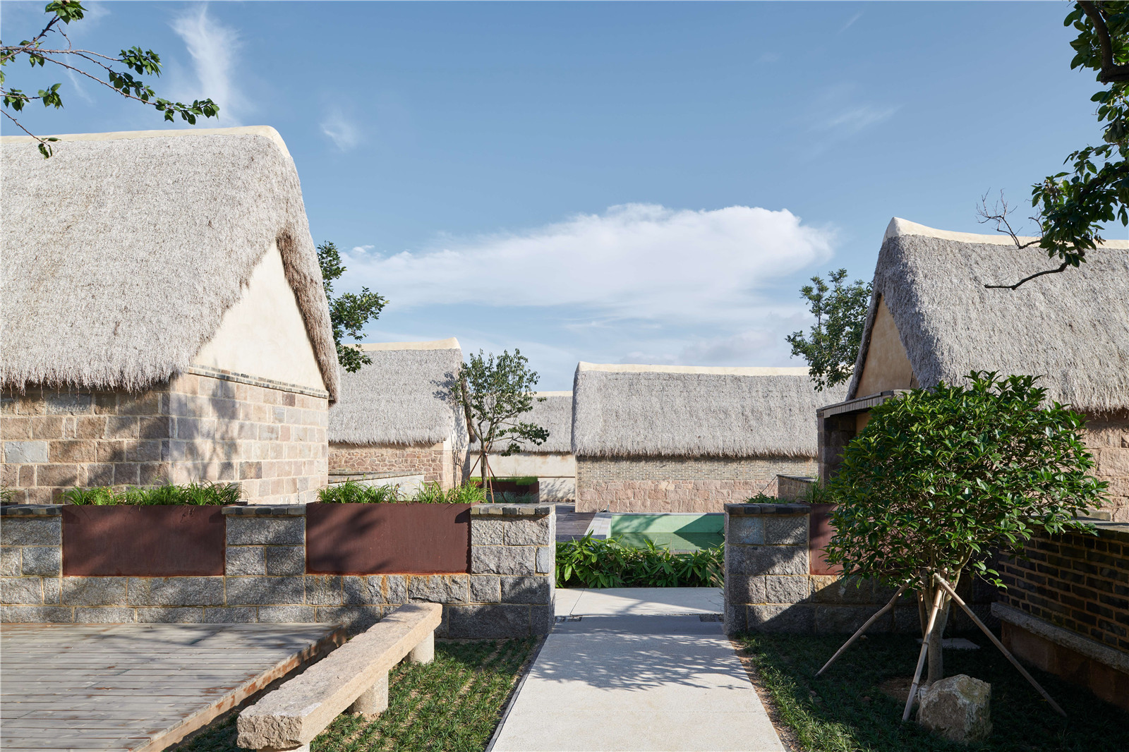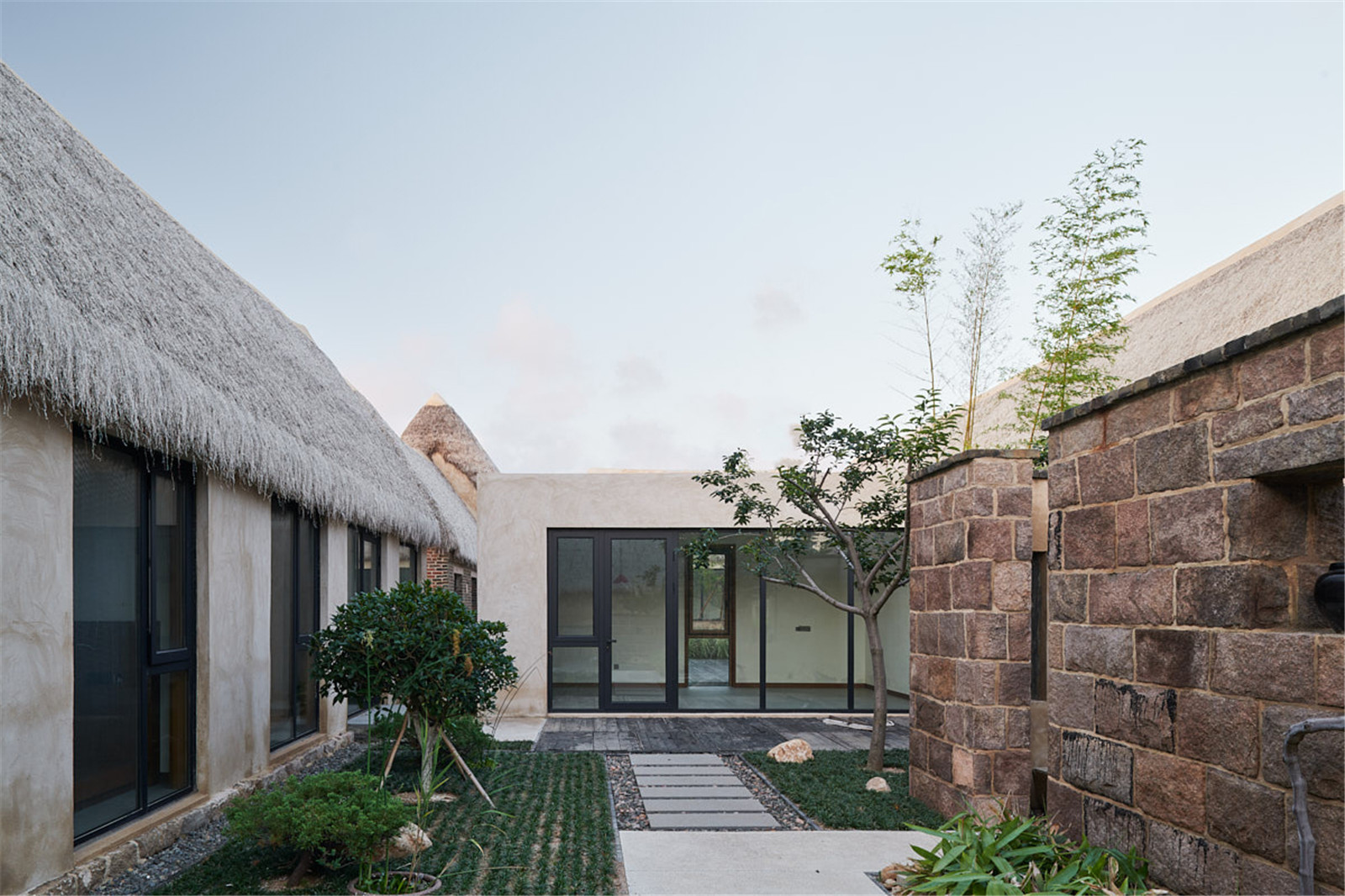 The design surveyed all 26 of the current courtyards at the beginning of the design, identifying five of them of poor quality for demolition. The courtyards were combined, demolished and expanded to change the way the original units were put together and to better suit the needs of modern accommodation. The original building of 26 rooms was consolidated into 19 after the design was completed. The roofs of the remaining 19 courtyards after the transformation were all continued as seagrass house roofs, forming a complete seagrass house village.