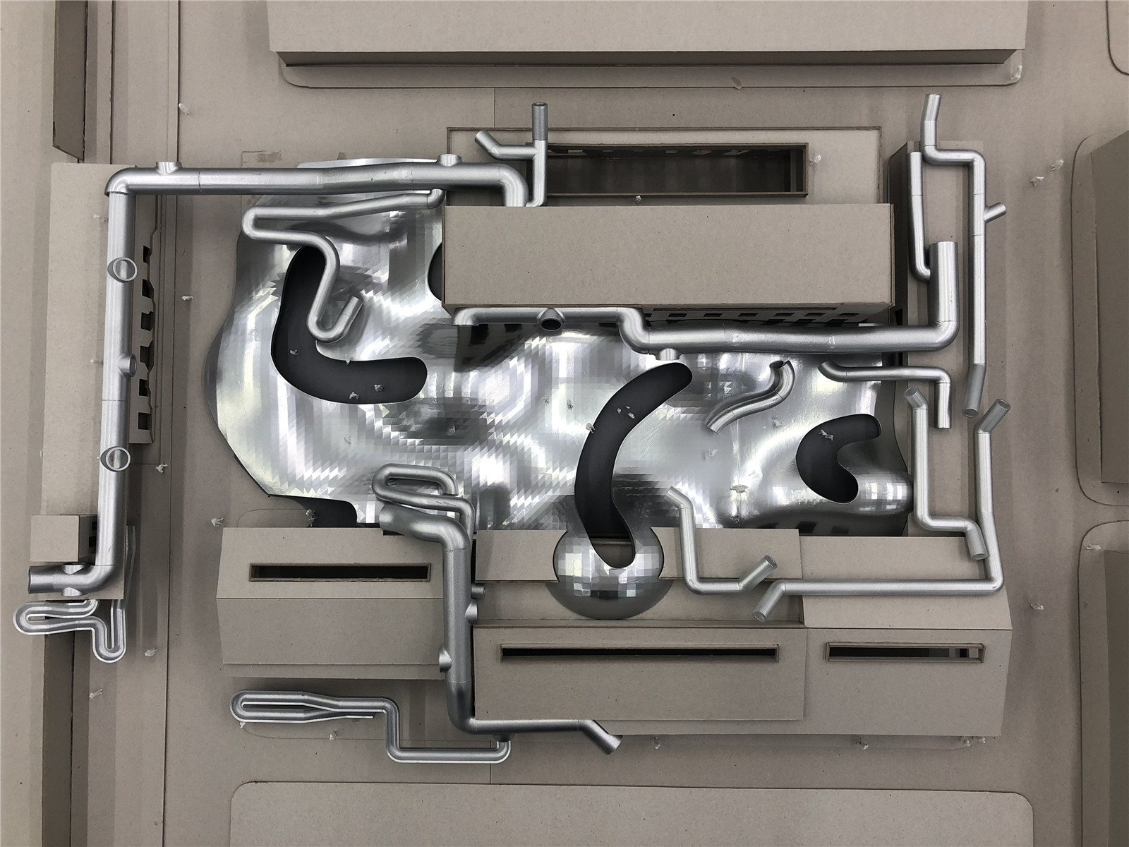 管道的設(shè)計強調(diào)構(gòu)建狹小空間,鼓勵孩子們用身體去感知并作出判斷,鍛煉了每一個感官的身體協(xié)調(diào)性和運動能力。鋼管道網(wǎng)絡(luò)就像一組連接橋梁和臺階,將場地串聯(lián)為一座冒險樂園。這些管道或盤旋在場地上方,或匍匐在山形地面的下方,各種傾斜的角度恰好滿足孩子們用身體探索的方式。我們?yōu)楣艿涝O(shè)計了五種規(guī)格:直徑2.3米-主要交通連廊,直徑1.7米-疏散樓梯,直徑1.3米-安全防護(hù)圍欄,直徑0.8米-滑筒,直徑0.4米-室外照明。這五種尺度的管道串聯(lián)以及疊加在一起形成復(fù)合的結(jié)構(gòu)體系。