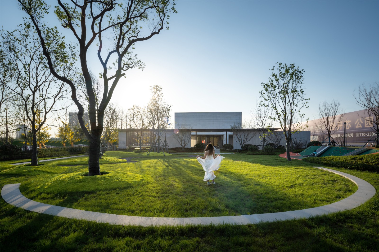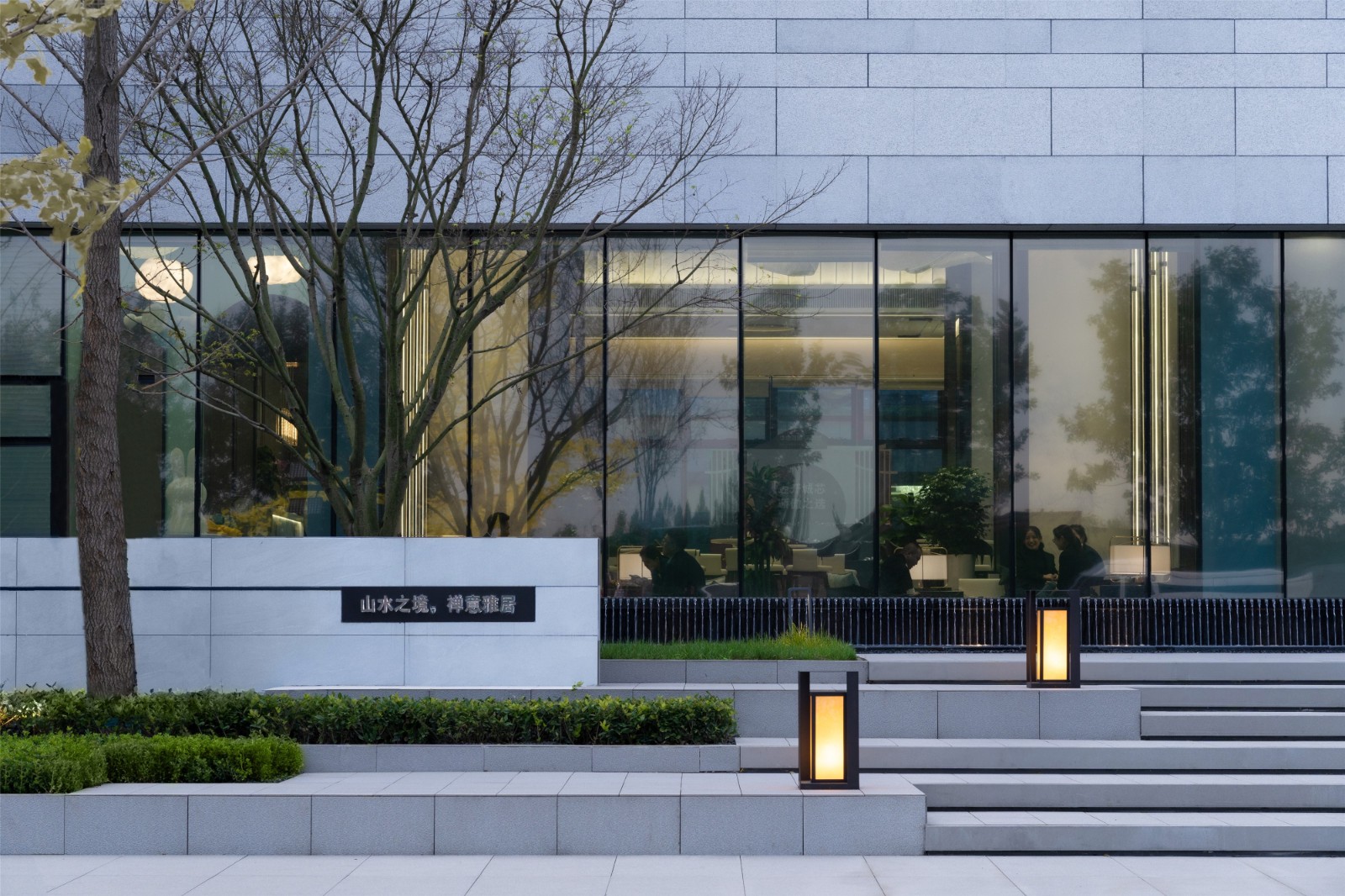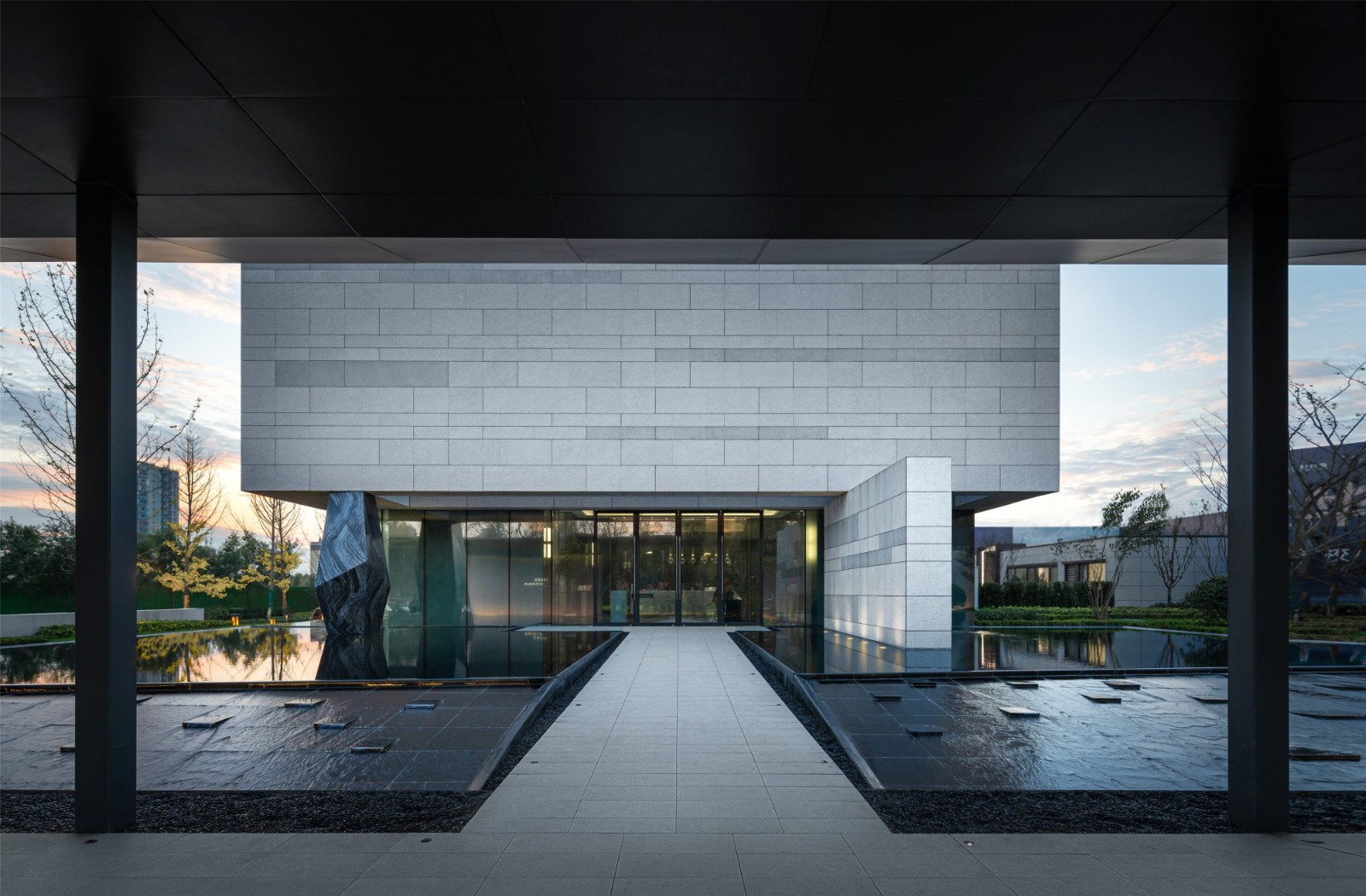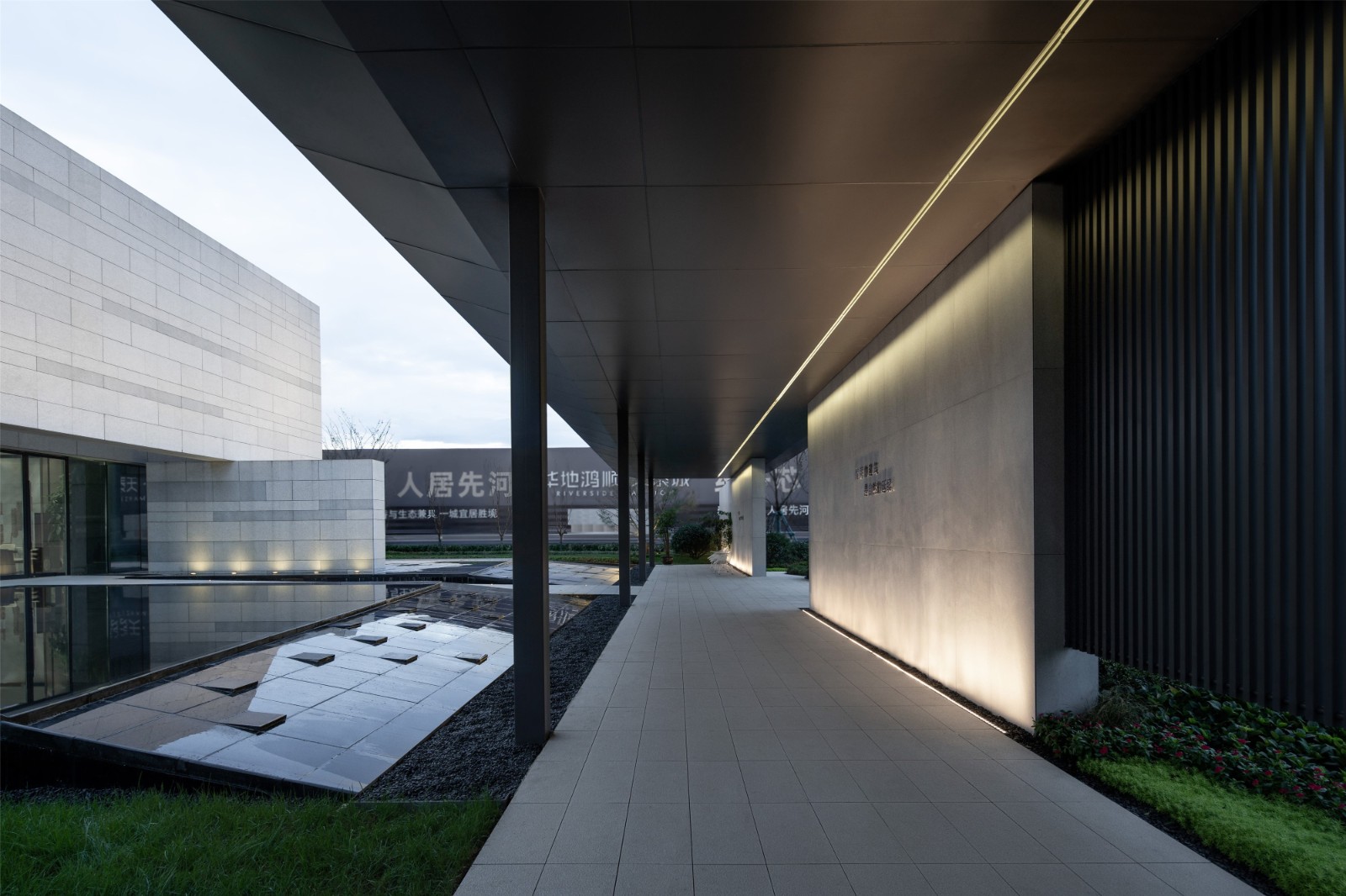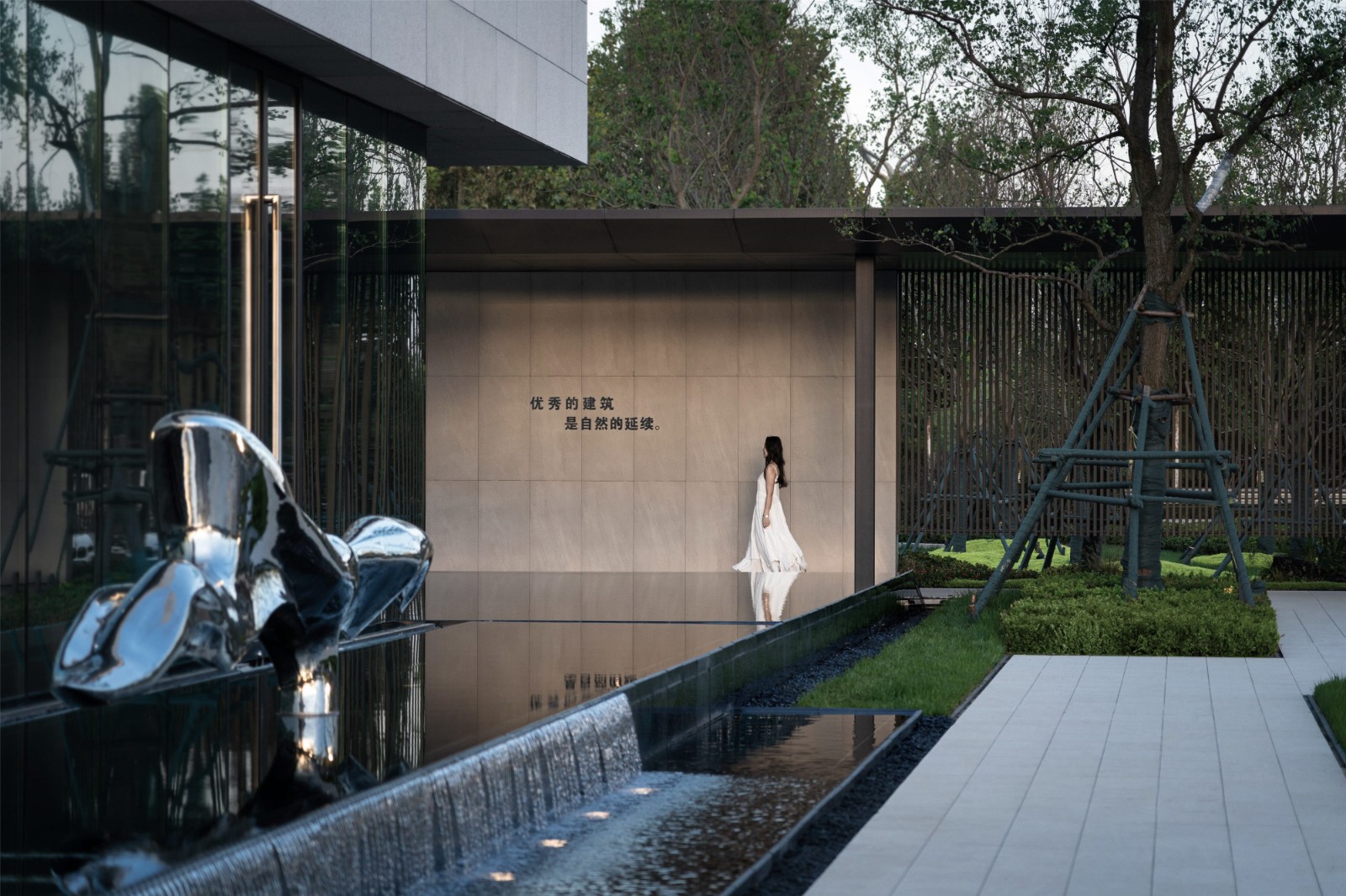 Stepping through the quiet water, through the path.The minimalist sales department came into view,Light and shadow move along, virtual and real staggered.Presents scenes of human-space dialogue,Feel the tranquility of the venue and the beauty of the ultimate simplicity.