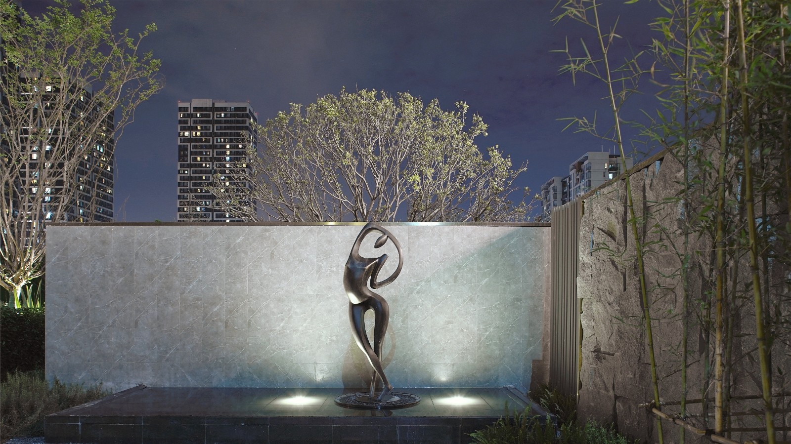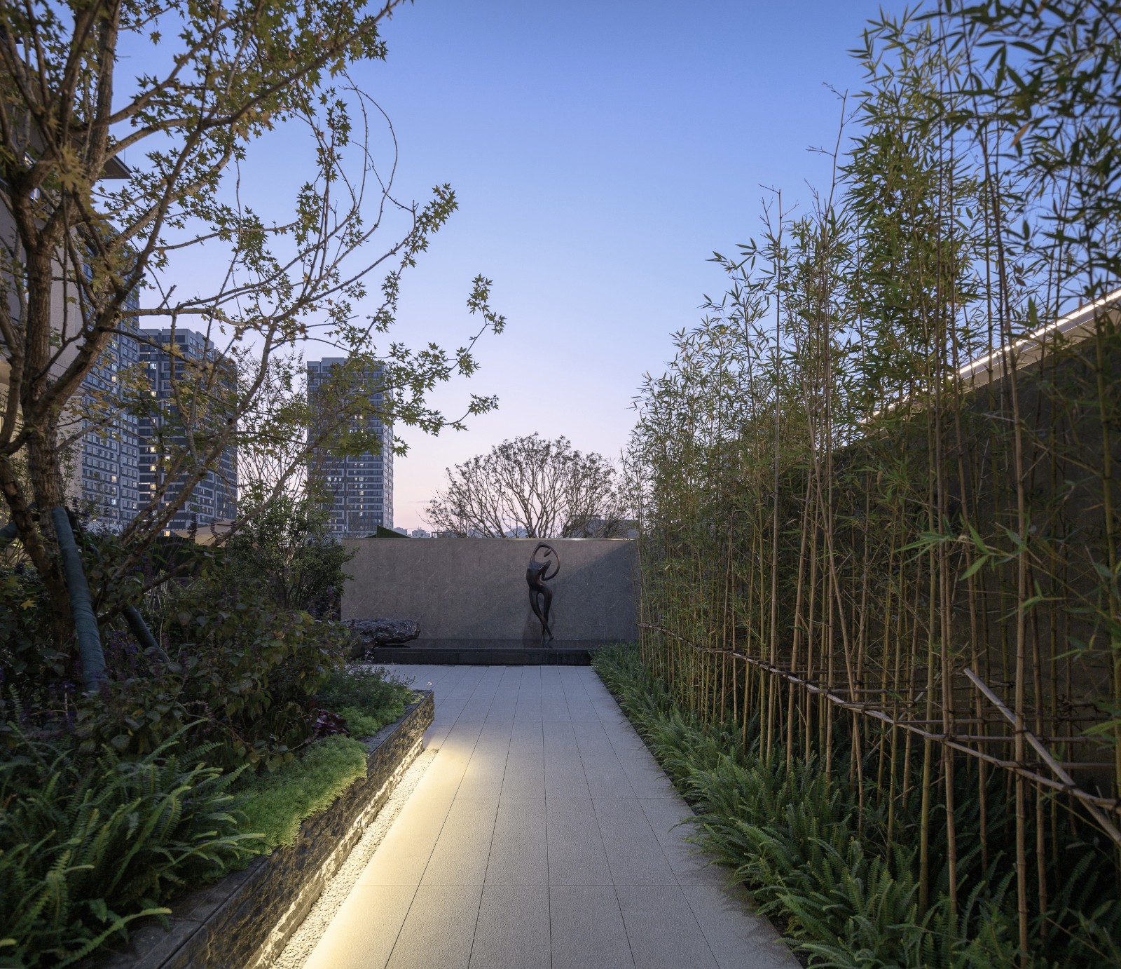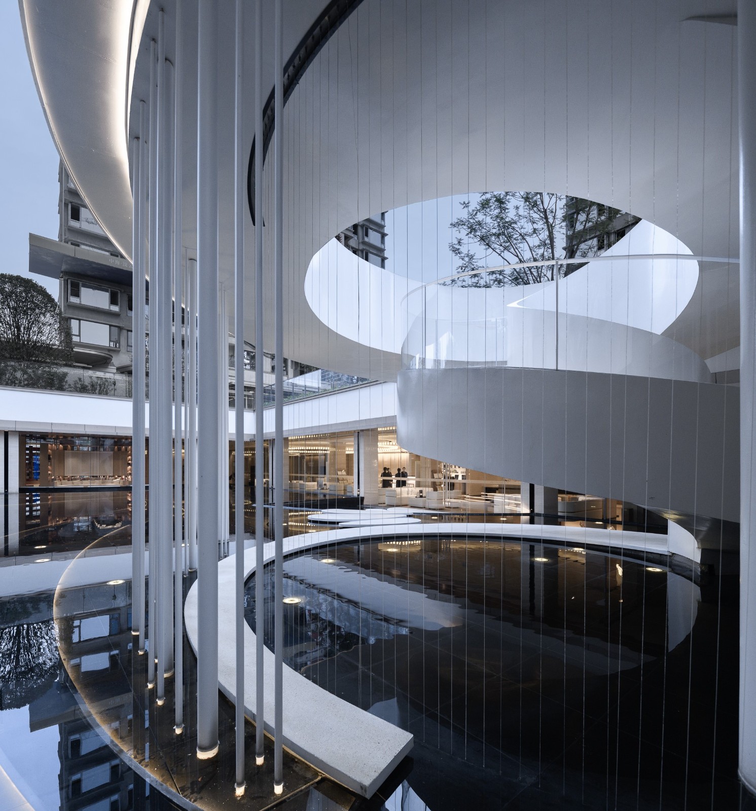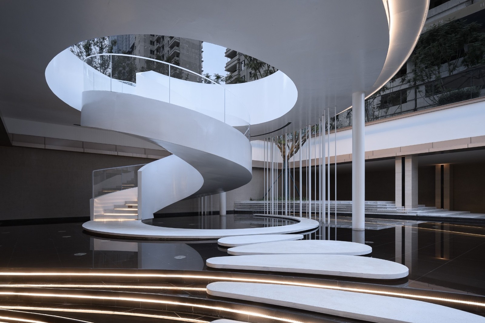 Holiday-level landscape garden, also tour and enjoy.By building a three-layer spatial landscape, the sunken vertical courtyard expresses the infinite visual tension in the limited space, feels the agility and romance of water in different spatial dimensions, and walks home in nature.