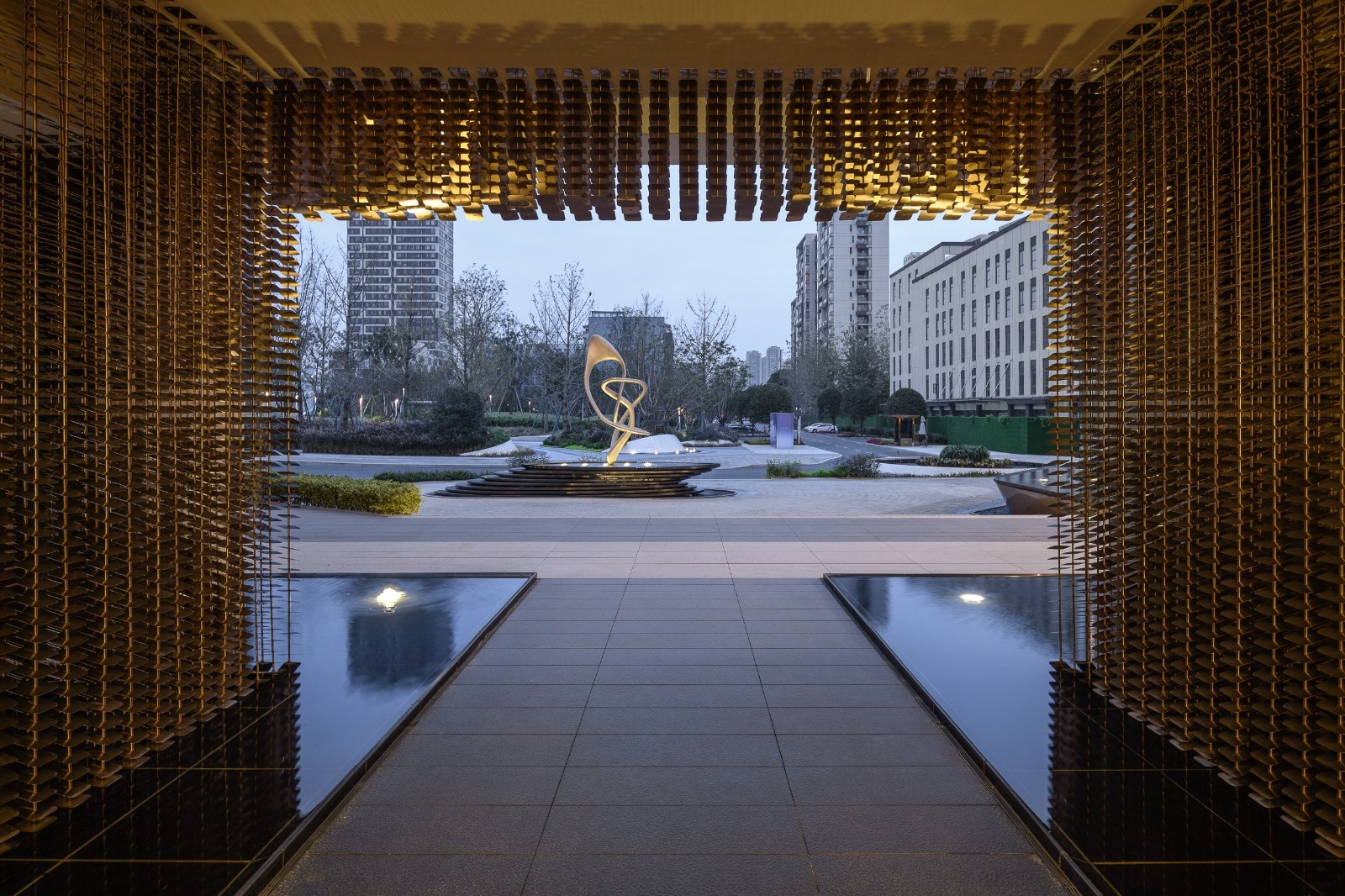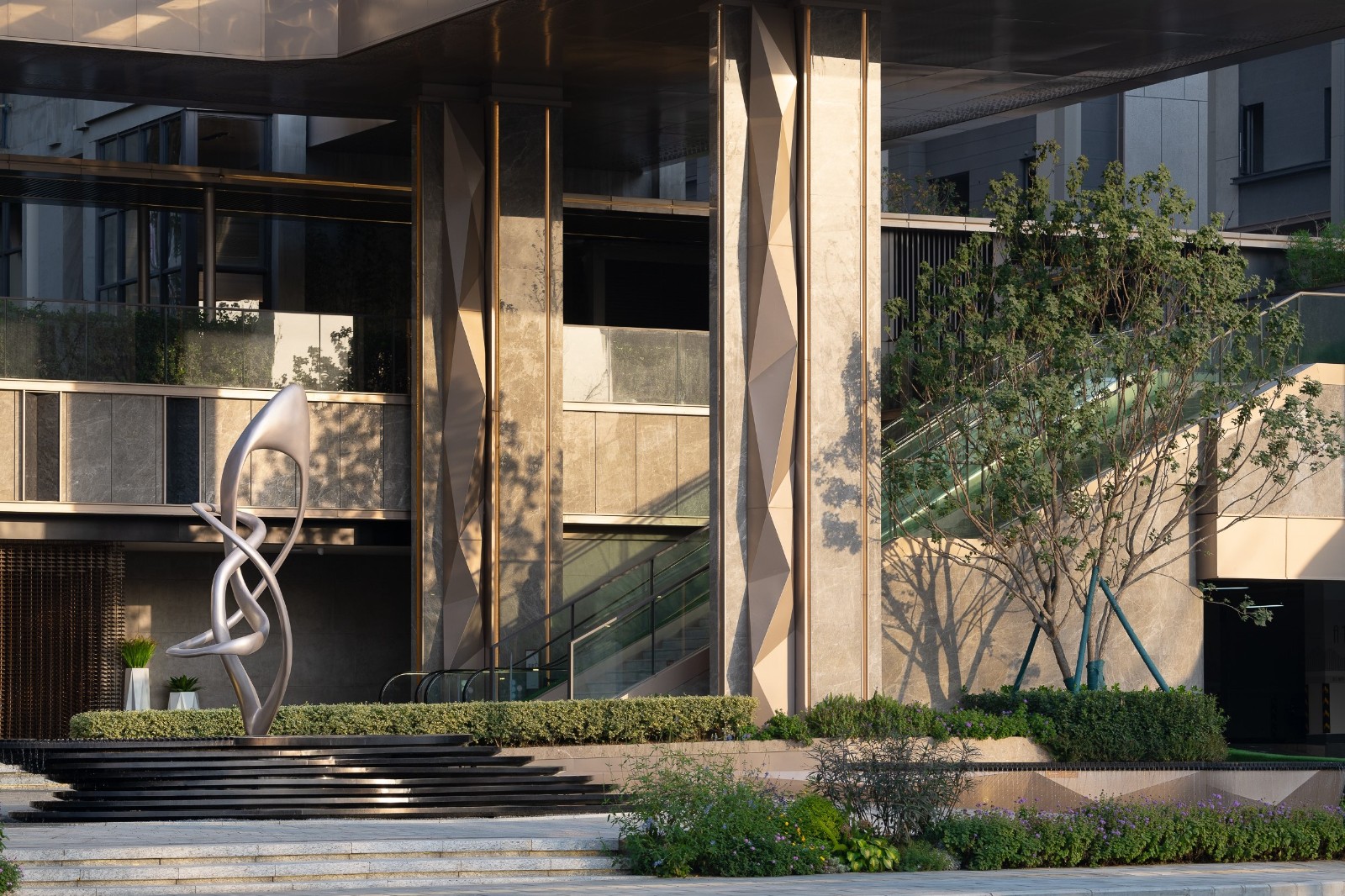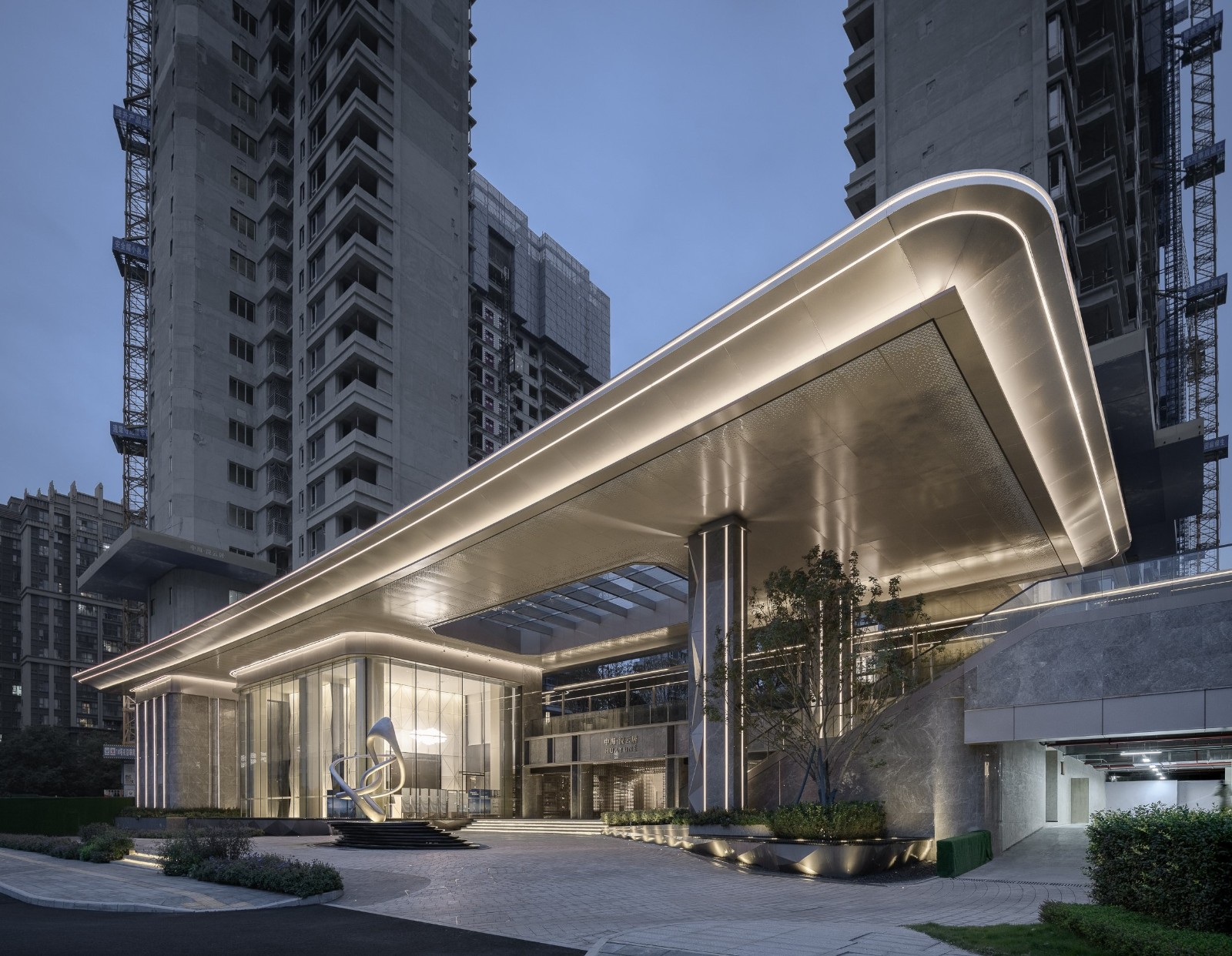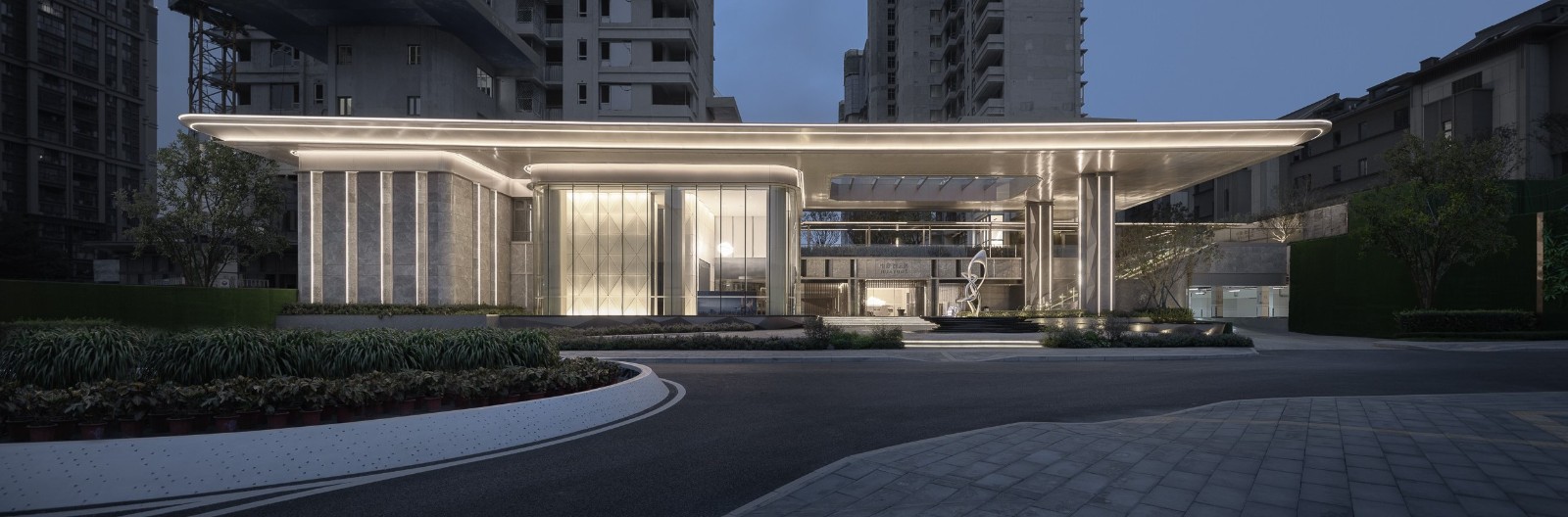The whole building is like a jewelry box, wrapped in metal and glass, and a five-star resort hotel. In order to configure the hotel roundabout entrance, the design red line is nearly 30 meters inside, and the project area provides the extremely generous home experience for the entrance space.